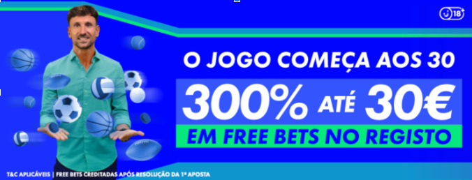 | Desporto | 300% até 30€ em freebet | JNSOLVIP |