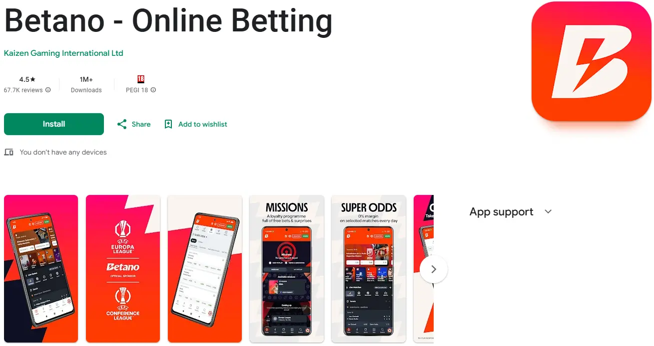 Em termos de requisitos, o utilizador deve ter instalado um sistema operativo Android 7.0 ou versão superior. No que respeita à privacidade e proteção de dados, a app Betano recolhe e processa dados pessoais, financeiros e de localização, entre outros.