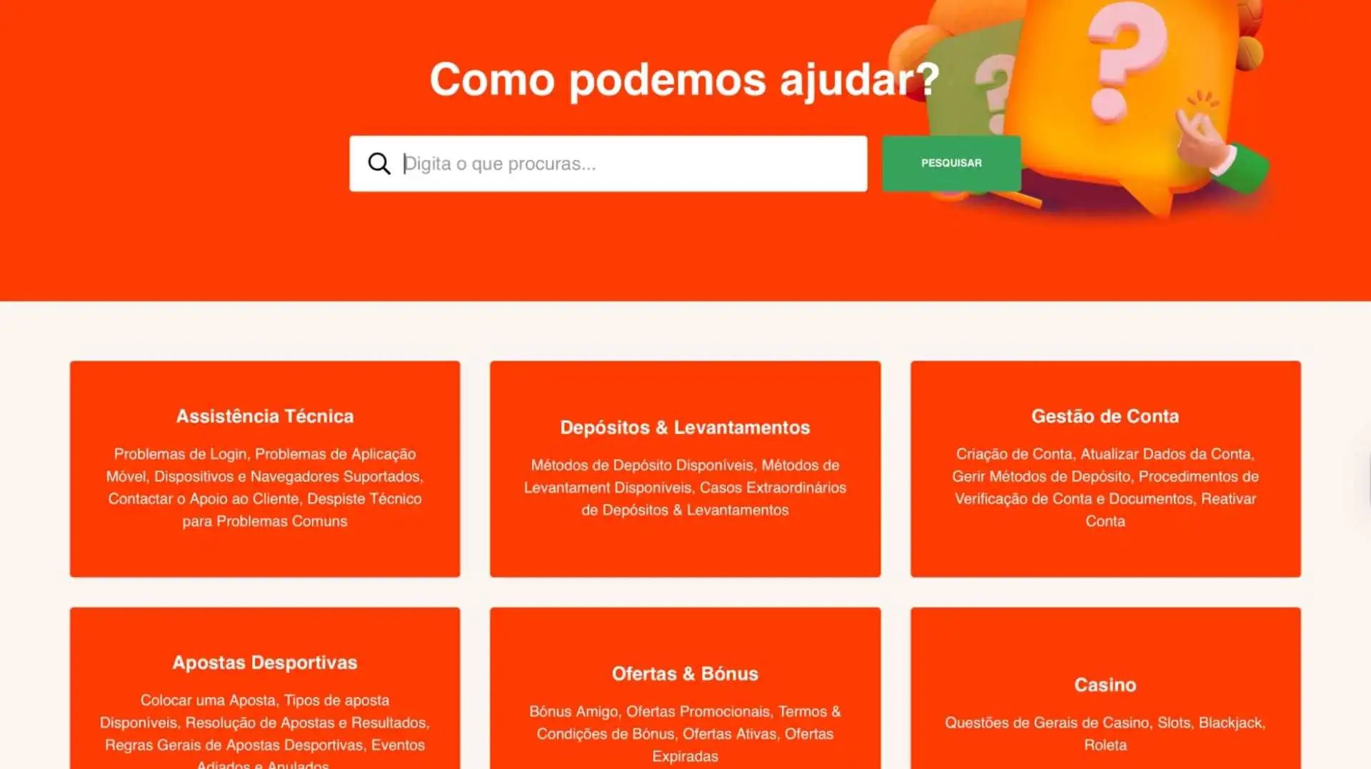 Por isso, antes de iniciar um contacto direto com os canais de apoio da plataforma, é altamente recomendável que o utilizador explore esta secção. Sendo composta pelas perguntas mais frequentes dos apostadores, permite resolver dúvidas comuns sem necessidade de esperar por uma resposta individualizada.