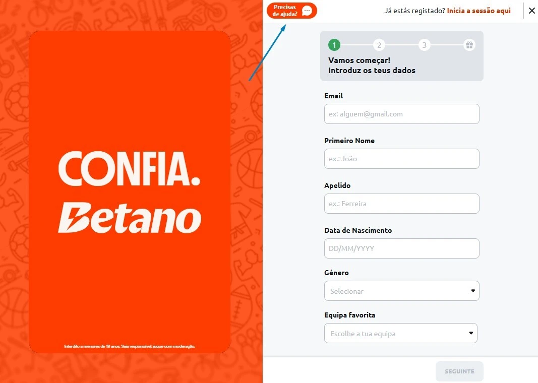 - Vá a Betano.pt e procure pelo ícone do Centro de Apoio.