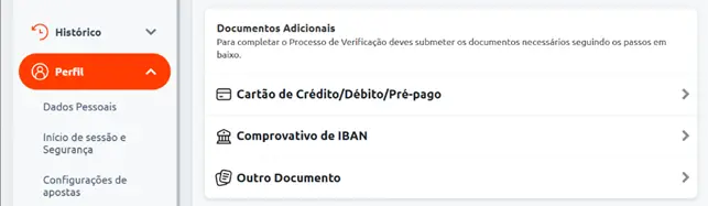 Este documento é necessário para levantamentos na Betano através de transferência bancária. Para levantar fundos com cartão de crédito ou carteira digital, precisa de realizar antes um depósito com esse mesmo método. Precisa também de proceder à sua respetiva verificação para efeitos de confirmação de identidade: