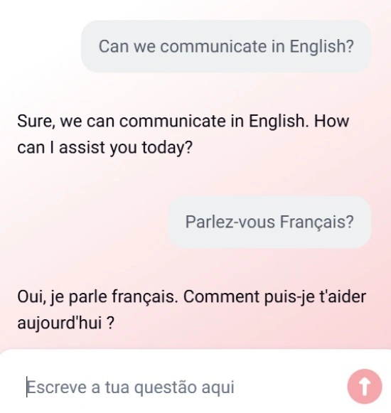 Foi, como tal, possível obter respostas em várias línguas, tendo sido muito útil no período noturno. Em todo o caso, algumas das respostas fornecidas foram um pouco vagas e sentimos necessidade de esclarecimentos adicionais.