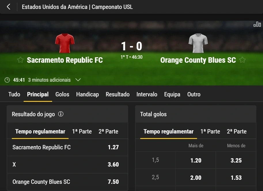 A quantidade de mercados de apostas bwin é o ponto que se segue. No que ao Desporto-rei diz respeito, a variedade de opções é quase infindável. O mesmo vale para a secção de Apostas Ao Vivo onde são apresentados mercados como: