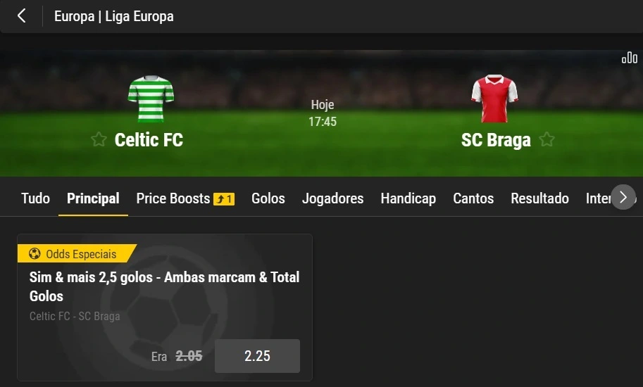 Além disso, certos eventos desportivos são contemplados pelos chamados Price Boosts. Ou seja, odds melhoradas em mercados de apostas específicos.