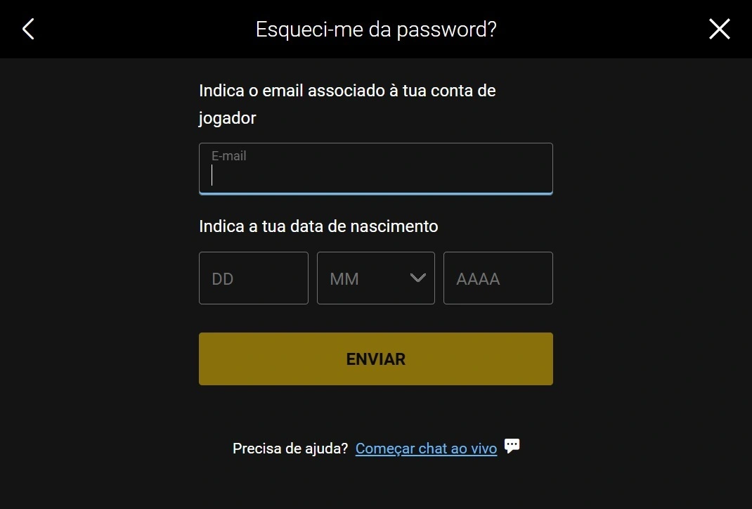 - Caso não se lembre da sua palavra-passe, pode requisitar uma nova. No formulário de login, clique em "Esqueci-me da minha password?" Vai receber no e-mail associado à sua conta bwin um link que lhe permitirá definir uma nova senha.