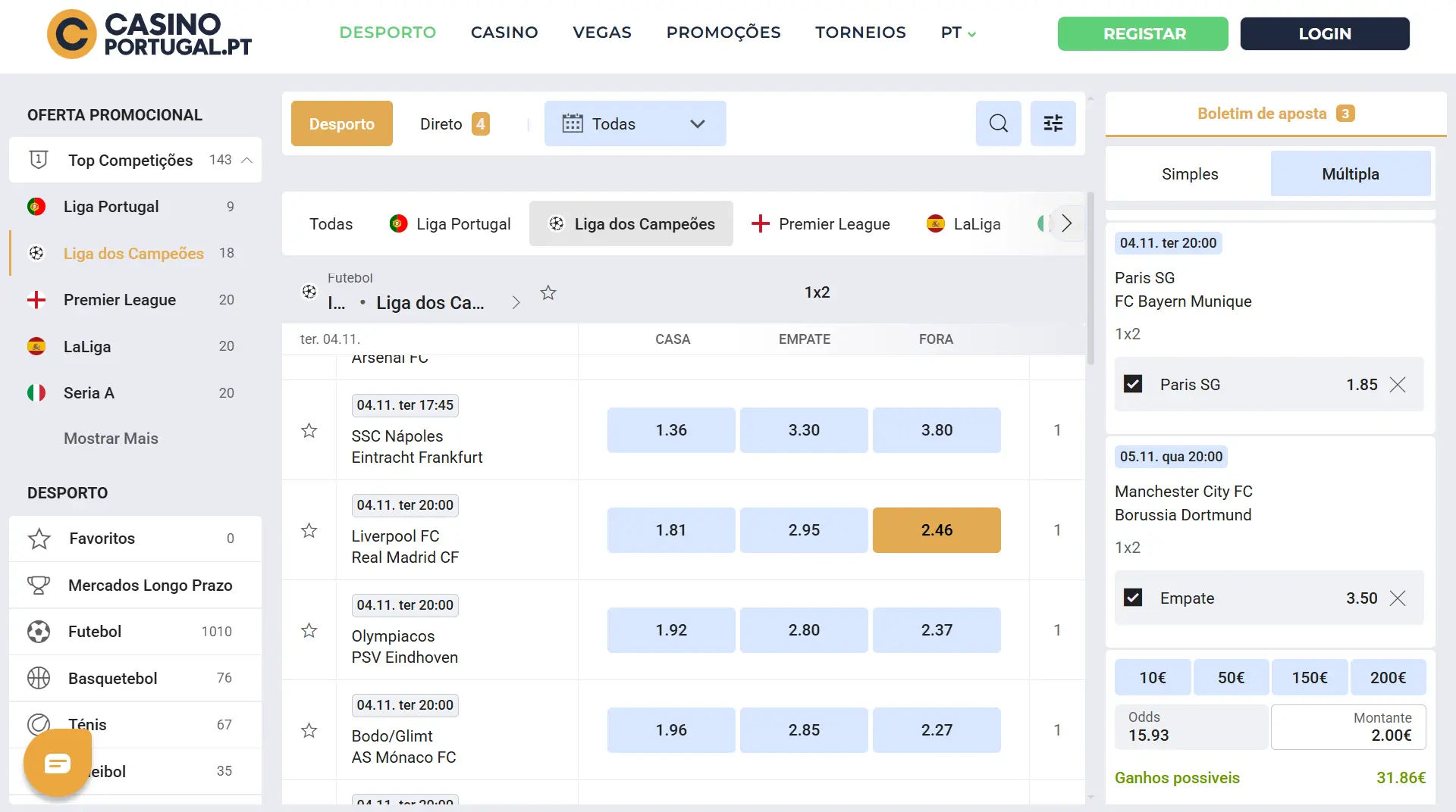 Por outro lado, espere pela atualização dos eventos desportivos para construir uma múltipla à sua maneira. Assim, poderá dar bom uso à Freebet de 2€.