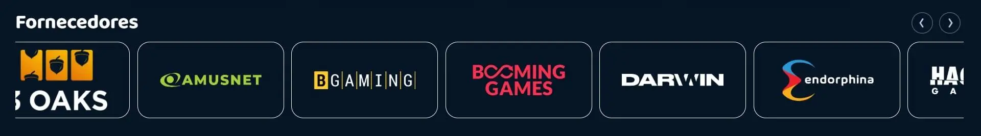 Há slots organizadas por temas (Exclusivos, Halloween, Cartoon, etc.), assim como também por secções (Jogos do momento, Novidades, Mais Populares). Entre os estúdios em destaque, estão alguns dos nomes mais consagrados da indústria: