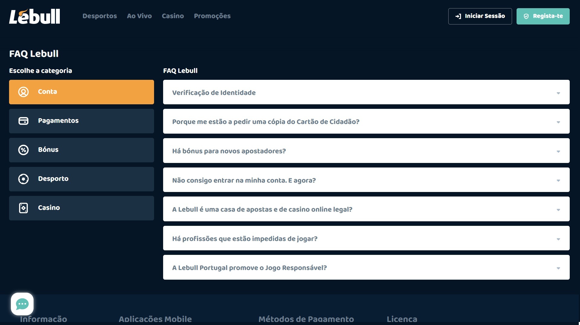 De realçar que não precisa de entrar permanentemente em contacto com a equipa do Suporte Lebull. Isto porque a operadora disponibiliza ainda uma secção de FAQs que é bastante completa.
