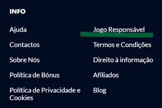 - Clique em Minha Conta e depois vá a Jogo Responsável.