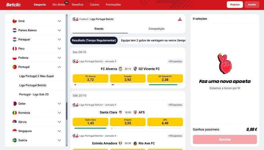 Passo 5: Selecionar os jogos da Liga Betclic e fazer a primeira aposta