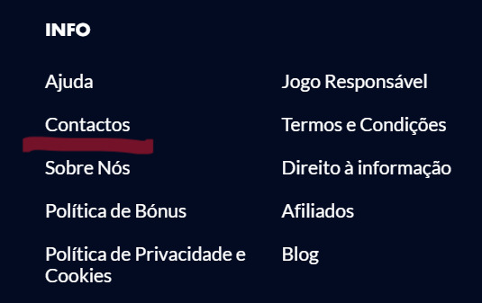 Na secção de Contactos da Solverde, vai encontrar um total de quatro canais distintos. São estes: live chat (ou chat ao vivo); contacto telefónico; endereço de e-mail e um endereço postal. Deslize até ao fundo da página inicial da operadora e clique em Contactos:
