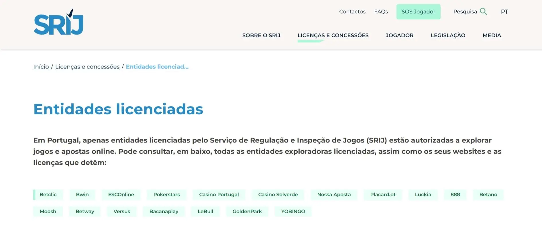 Em alternativa, existem sites especializados que mantêm parcerias com as mais variadas operadoras. Todavia, confira sempre a legalidade dos casinos online listados, nomeadamente através do separador de Entidades Licenciadas do SRIJ.