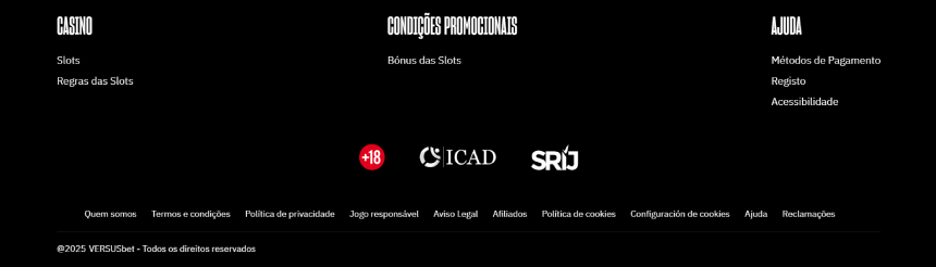 Para cumprir as condições de rollover do bónus da VERSUSbet, só pode jogar nas slots. Isto porque a operadora não tem ainda uma secção de jogos de mesa. Certos casinos online legais em Portugal permitem jogar blackjack ou roleta, mas aqui ainda não pode. Além disso, não há jogos de saque nem banca francesa.