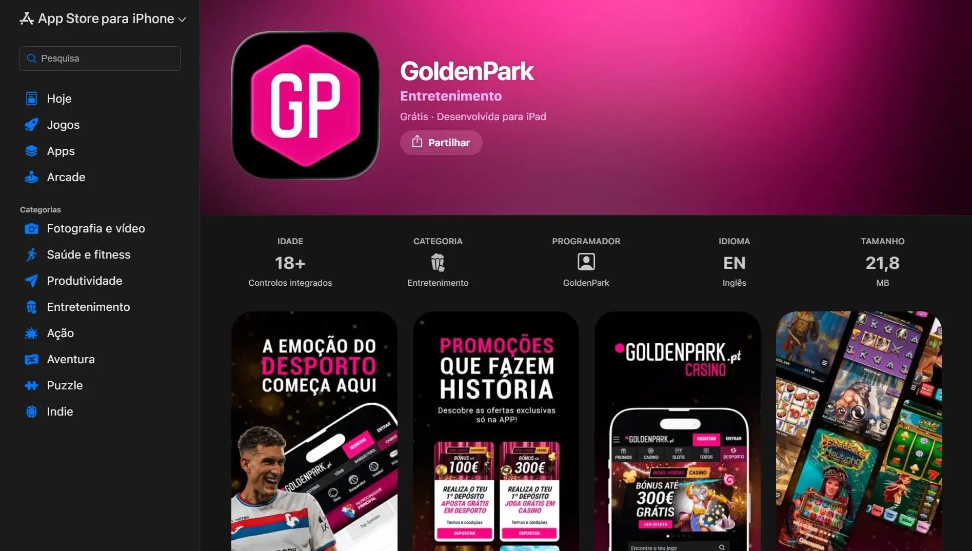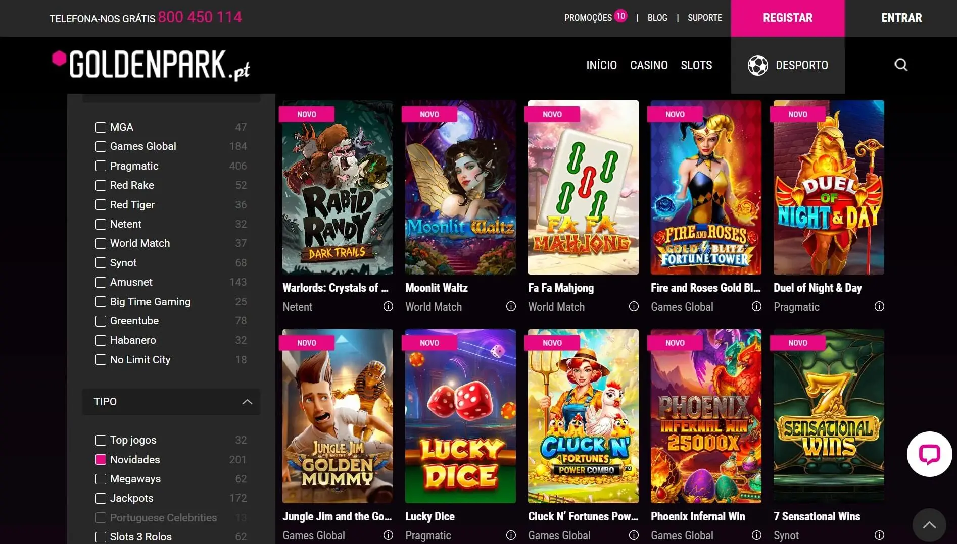 - GoldenPark: catálogo com mais de 1000 slot machines;