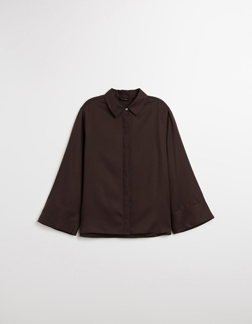 Com este castanho mais concentrado estará sempre bem. E, tratando-se de blusas, ficará bem com qualquer casaco, mais ou menos formal.