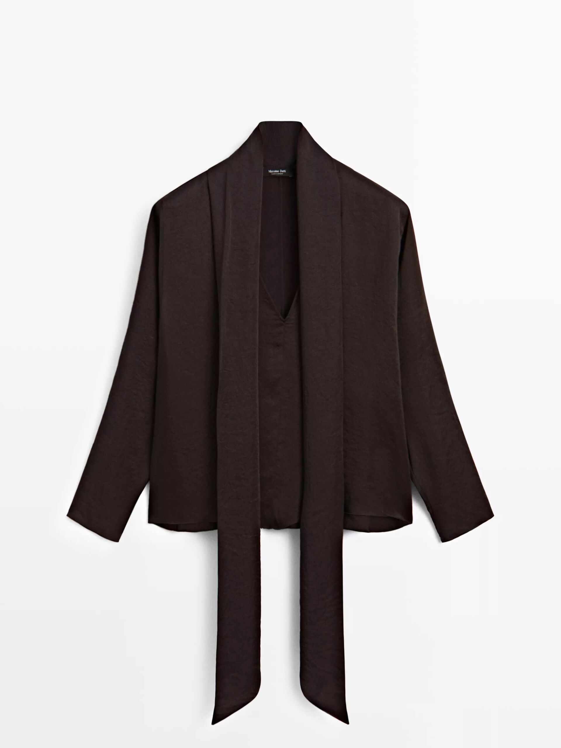Blusa fluida com laçada, Massimo Dutti, 59.95€