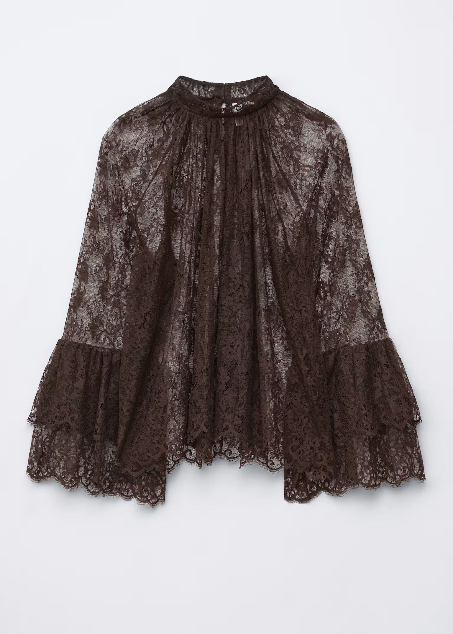 Blusa de renda com folhos, &Other Stories, H&M, 89e