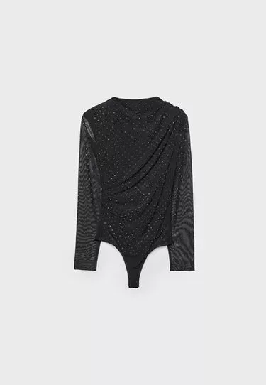 Body de tule franzido e brilho, Stradivarius, 17.99€