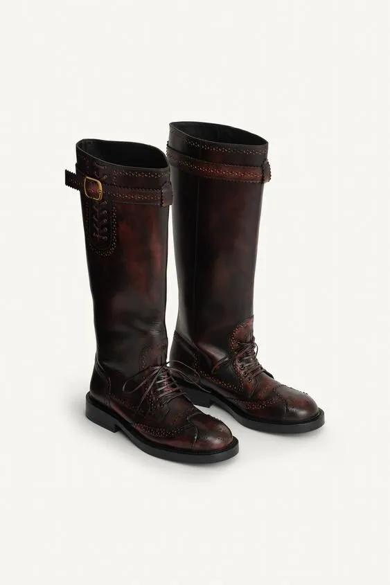 Bota em pele com brogue, Edição Limitada, Zara, 219€