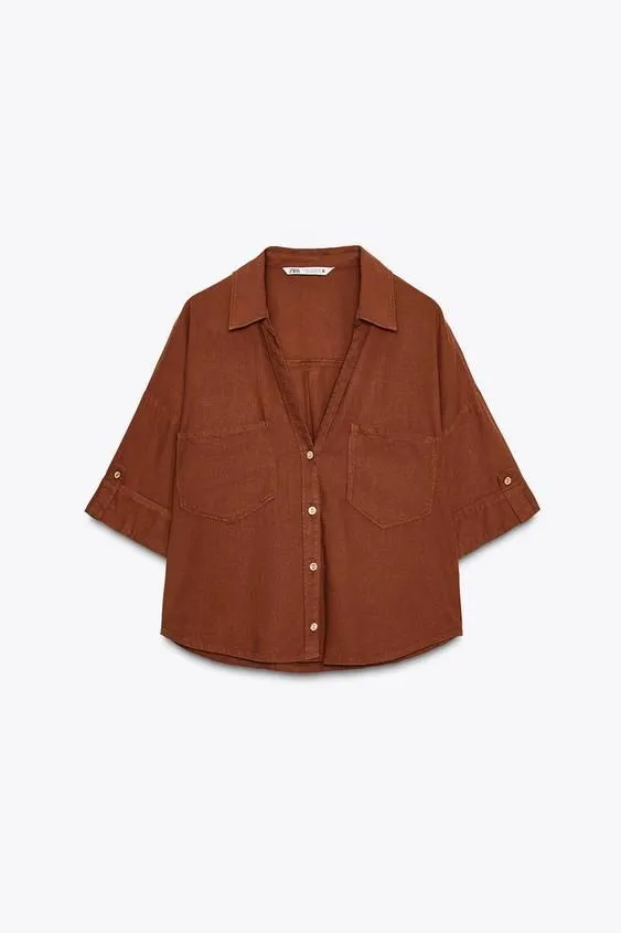 Camisa cropped com linho, Zara, antes 19.95€, depois 9.99€