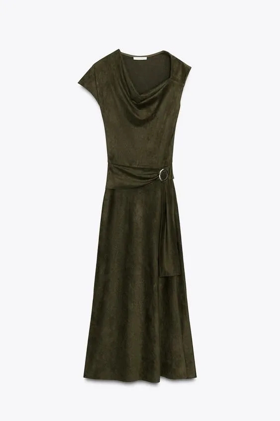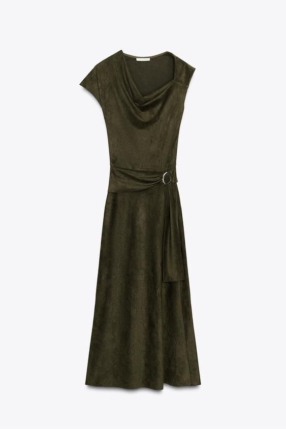 Vestido assimétrico com efeito de camurça, Zara, 29.95€