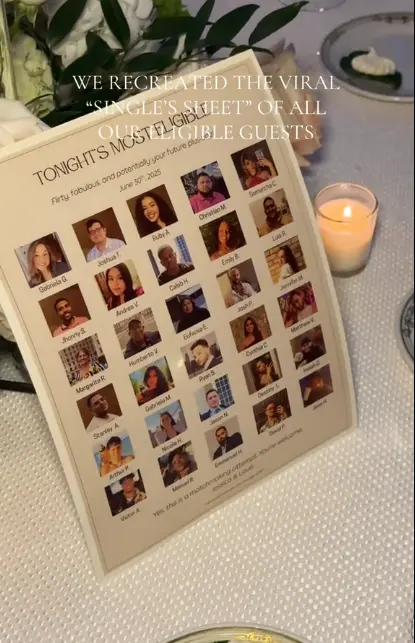 Um casamento, 12 mesas para convidados e uma dúzia de folhas com fotografias e nomes de 30 solteiros presentes naquela celebração. Noiva diz que os amigos gostaram da ideia, mas a polémica ecoou nas redes sociais, com opiniões a considerarem a ideia "humilhante"