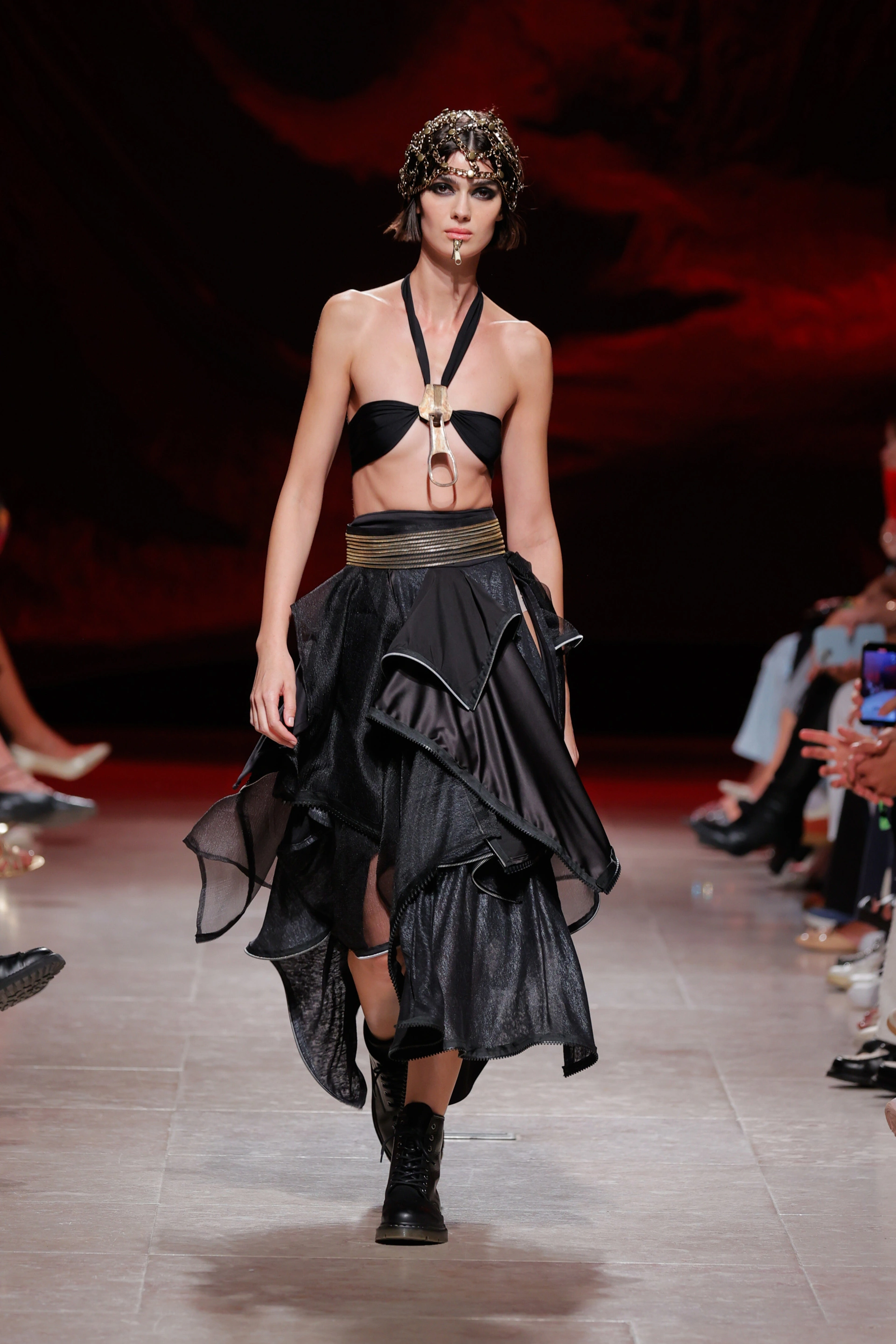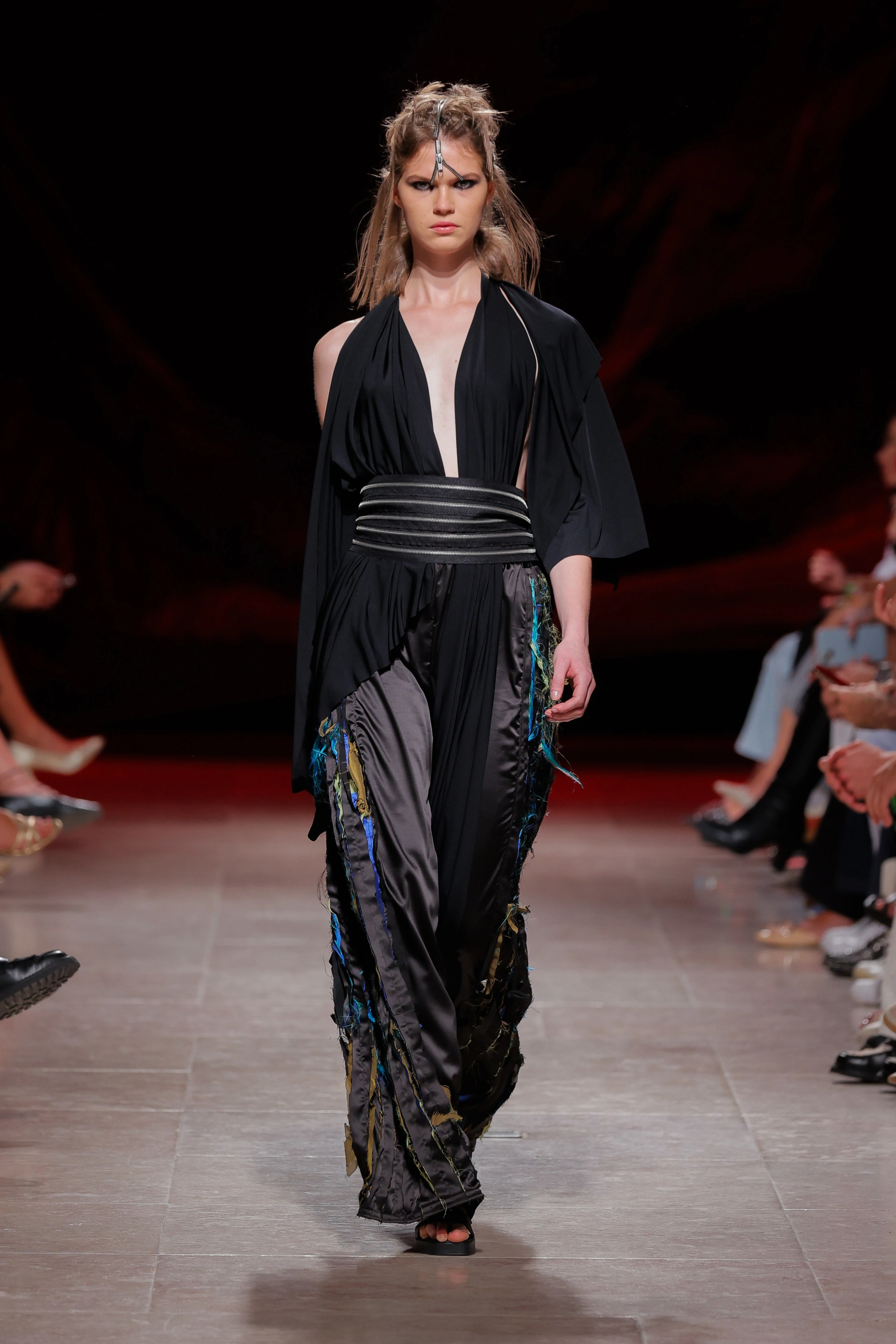 Na próxima primavera-verão de 2026, o designer português quer quase reescrever a história deste elemento de costura e torná-lo o ponto decisor de peças de roupa e o epicentro de joalharia, disposta de forma inesperada: na cabeça, no contorno do olhar e um pouco por todo o corpo.