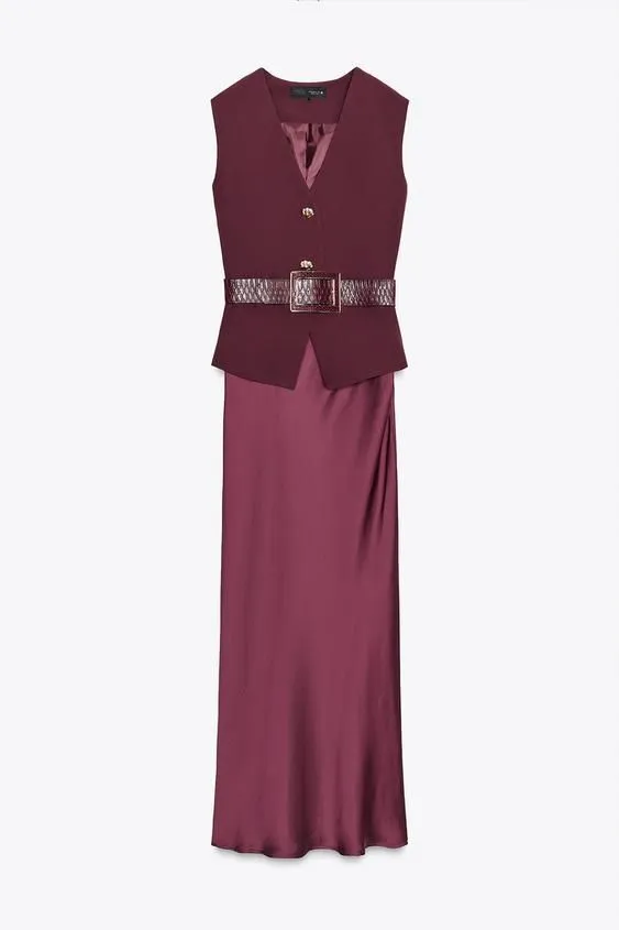 Vestido midi combinado colete cinto, Zara, 49.95€
