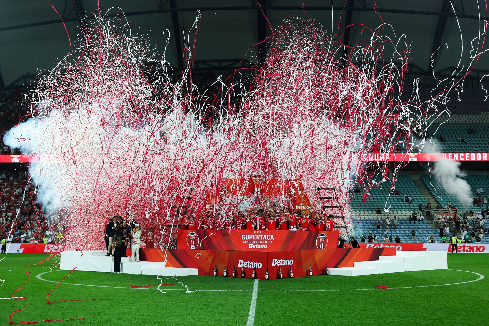 Benfiquistas festejam a conquista da 10.ª Supertaça, decidida com um golo de Pavlidis. Luis Suárez estreou-se de leão ao peito