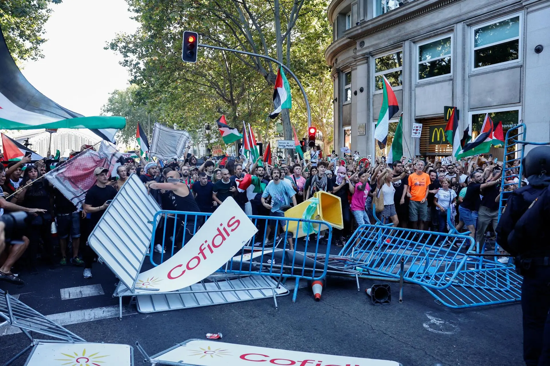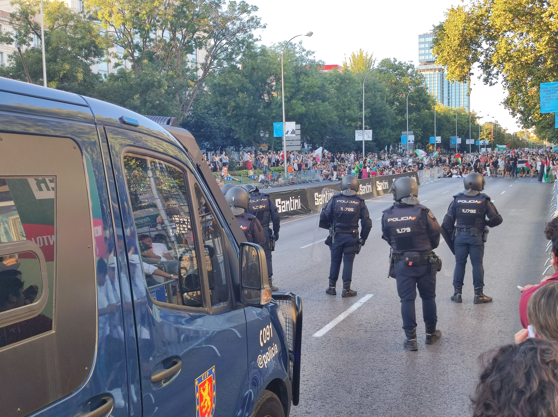 Milhares de manifestantes invadiram o centro de Madrid com bandeiras e outros símbolos da Palestina, por causa da participação na Volta a Espanha da equipa israelita Israel-Premier Tech, obrigaram a organização a anular a etapa final e tiveram que ser contidos pelas forças policiais. Pelo menos um manifestante foi detido.