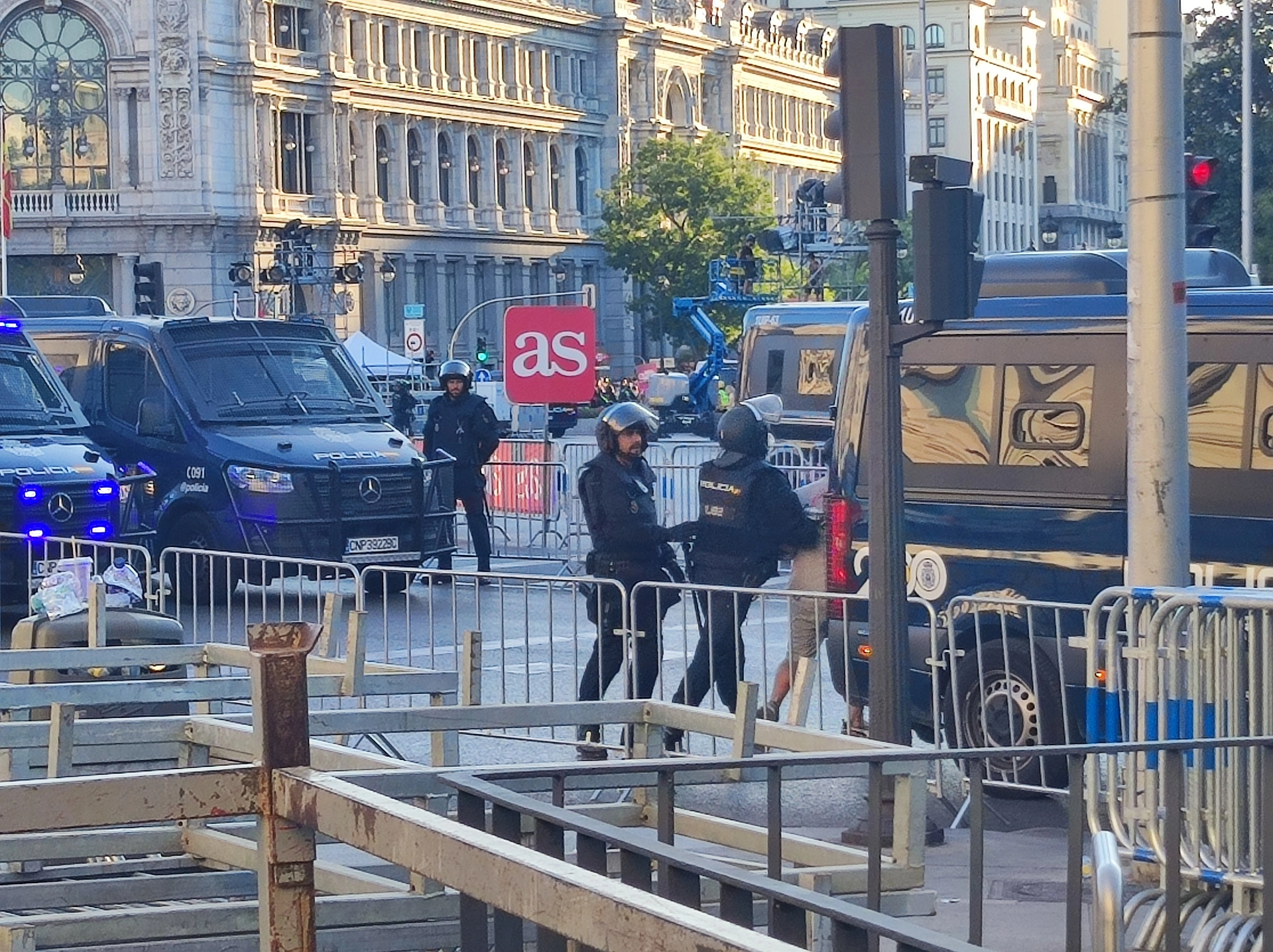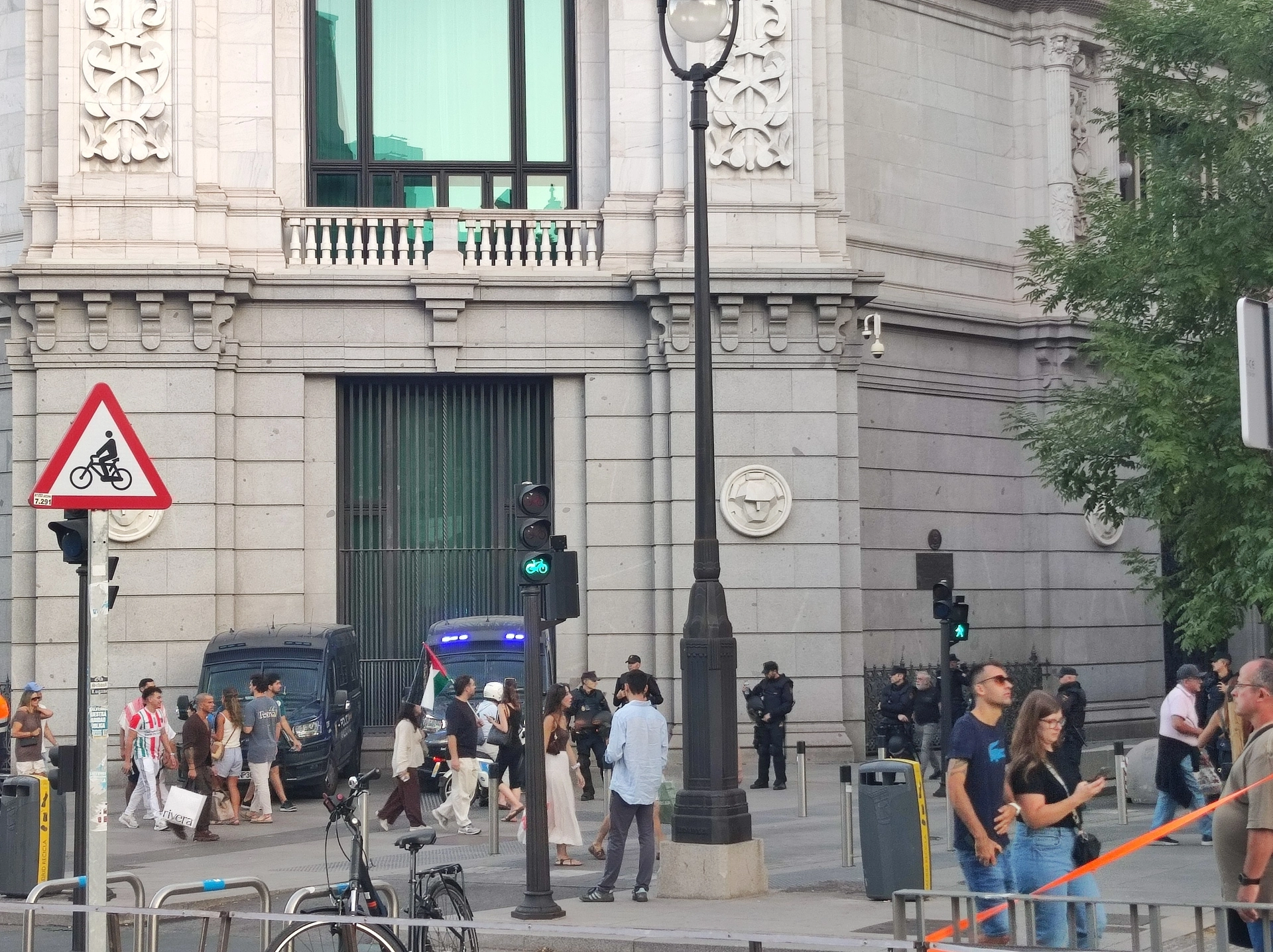 Na imediações é visível o reforço de segurança, nomeadamente, no edifício sede do Banco de Espanha, protegido contra qualquer tentativa de invasão.