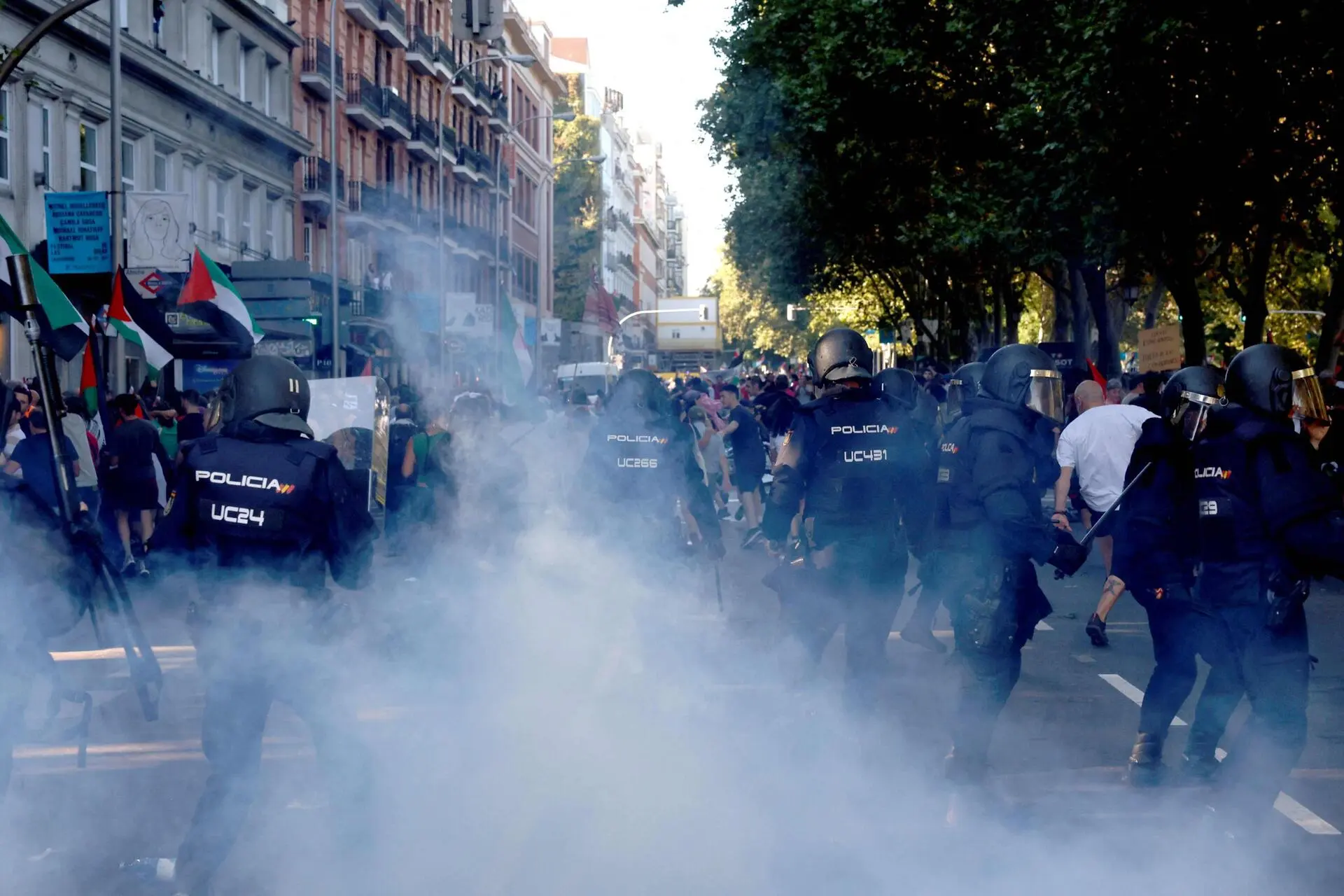 Cargas policiais e tiros para controlar protestos pró-Palestina que anularam final da Vuelta