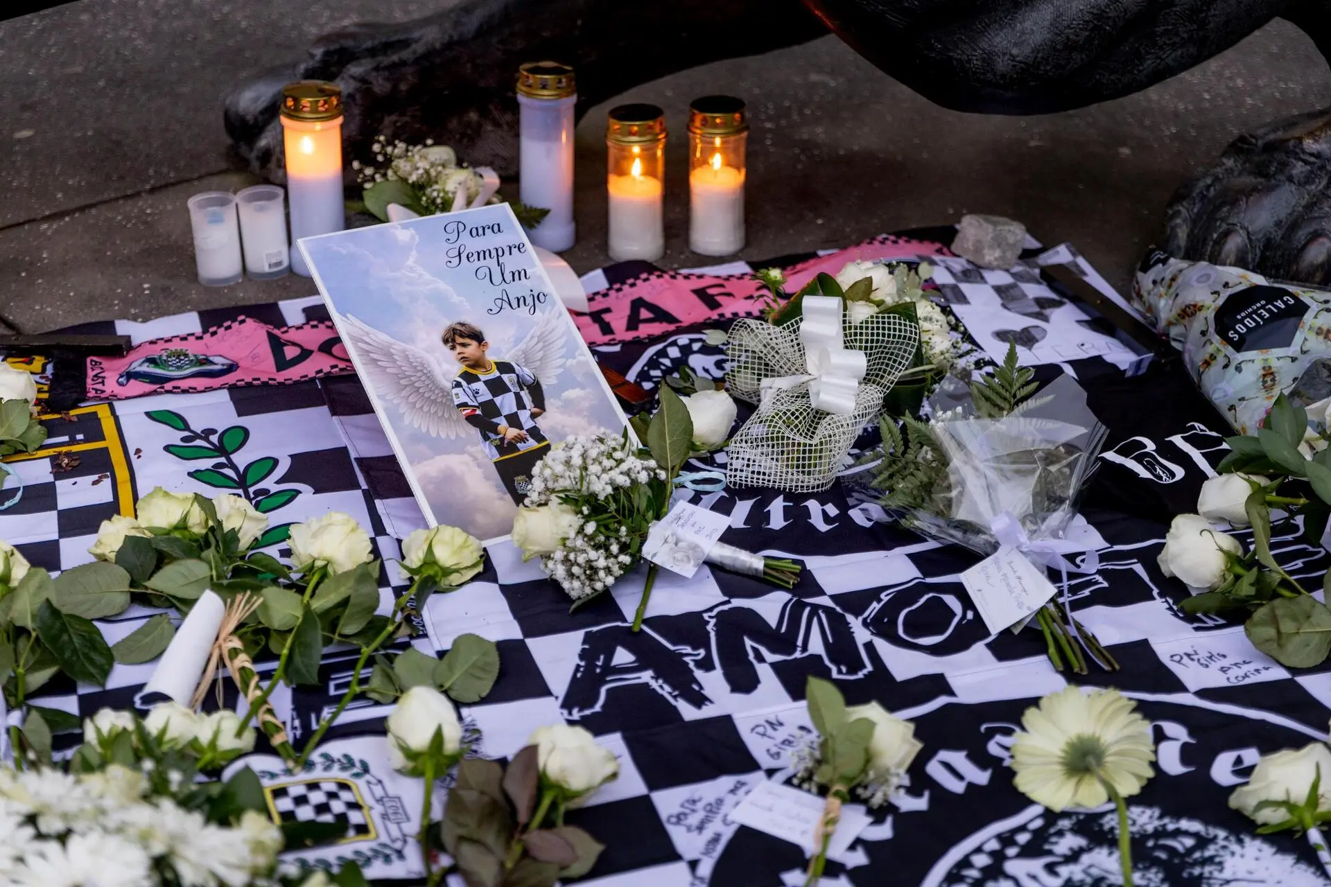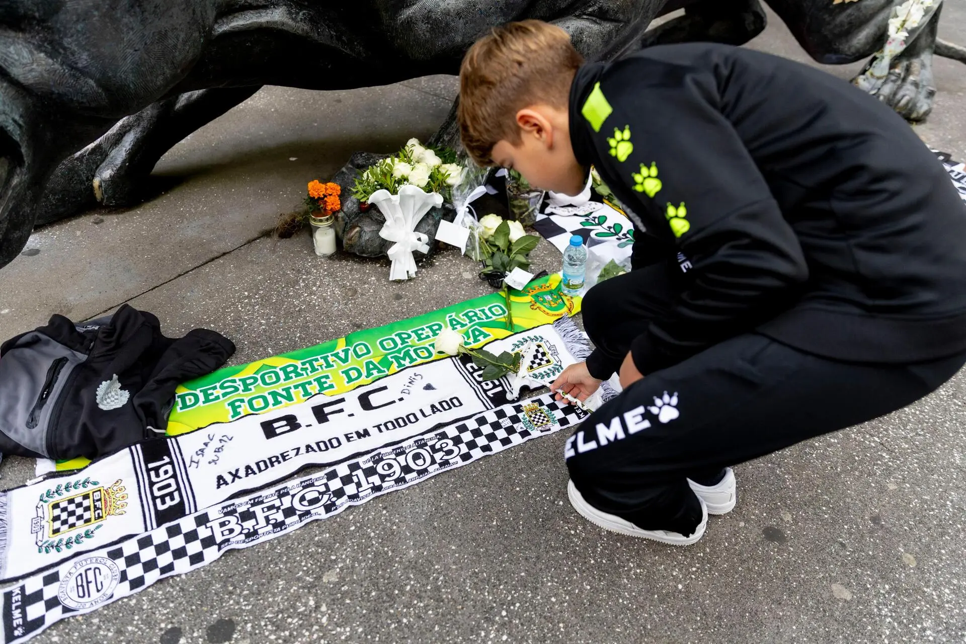 Centenas de pessoas juntaram-se, esta quarta-feira, junto ao estádio do Bessa para homenagear Dinis, o menino de sete anos que faleceu, na véspera, durante um treino da equipa de sub-8.