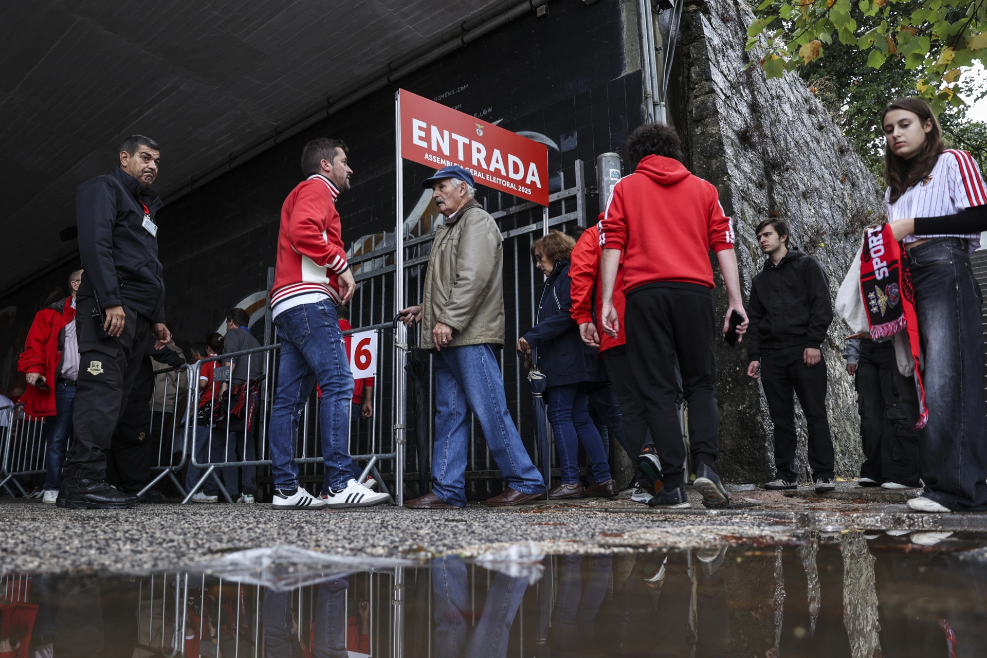 Apesar da chuva, pelas 8 horas já havia centenas de sócios do Benfica a aguardar na fila para votar no Estádio da Luz.