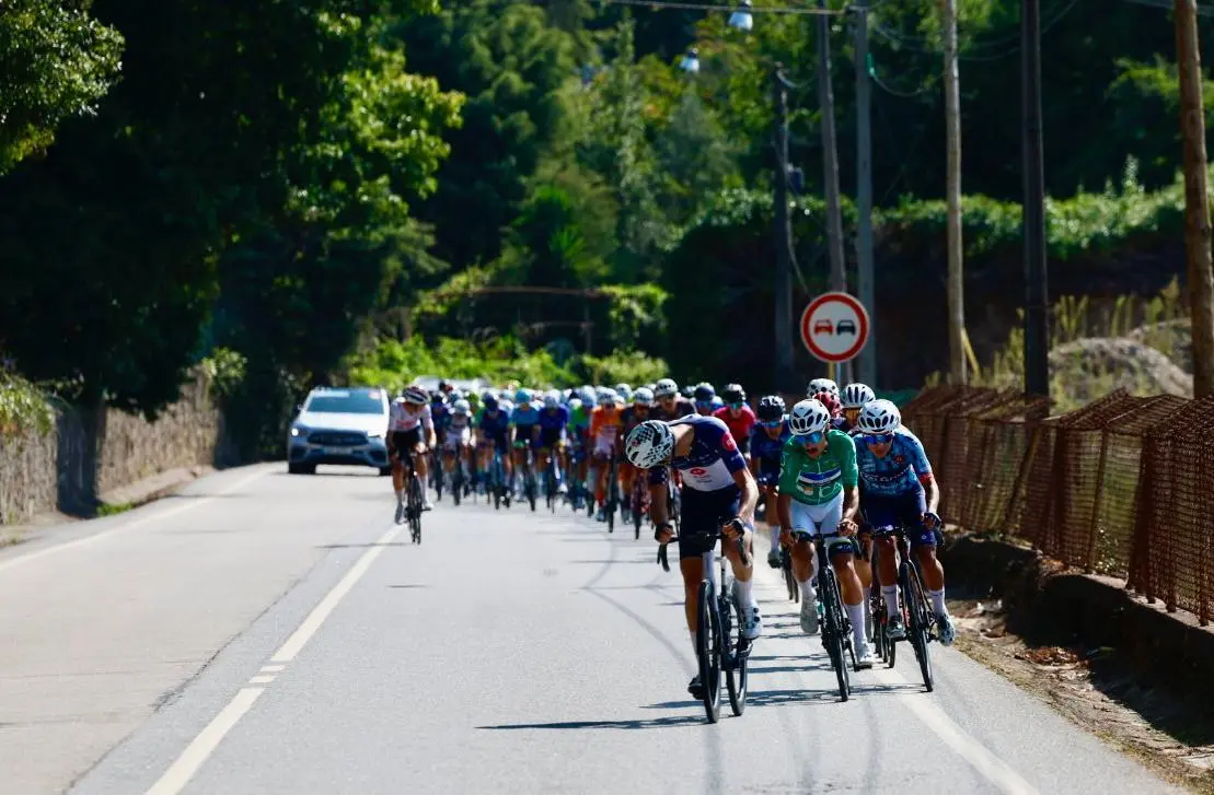 Diogo Saleiro (Porminho) que seguia numa posição intermédia já foi absorvido no pelotão. São 37 corredores na frente da corrida