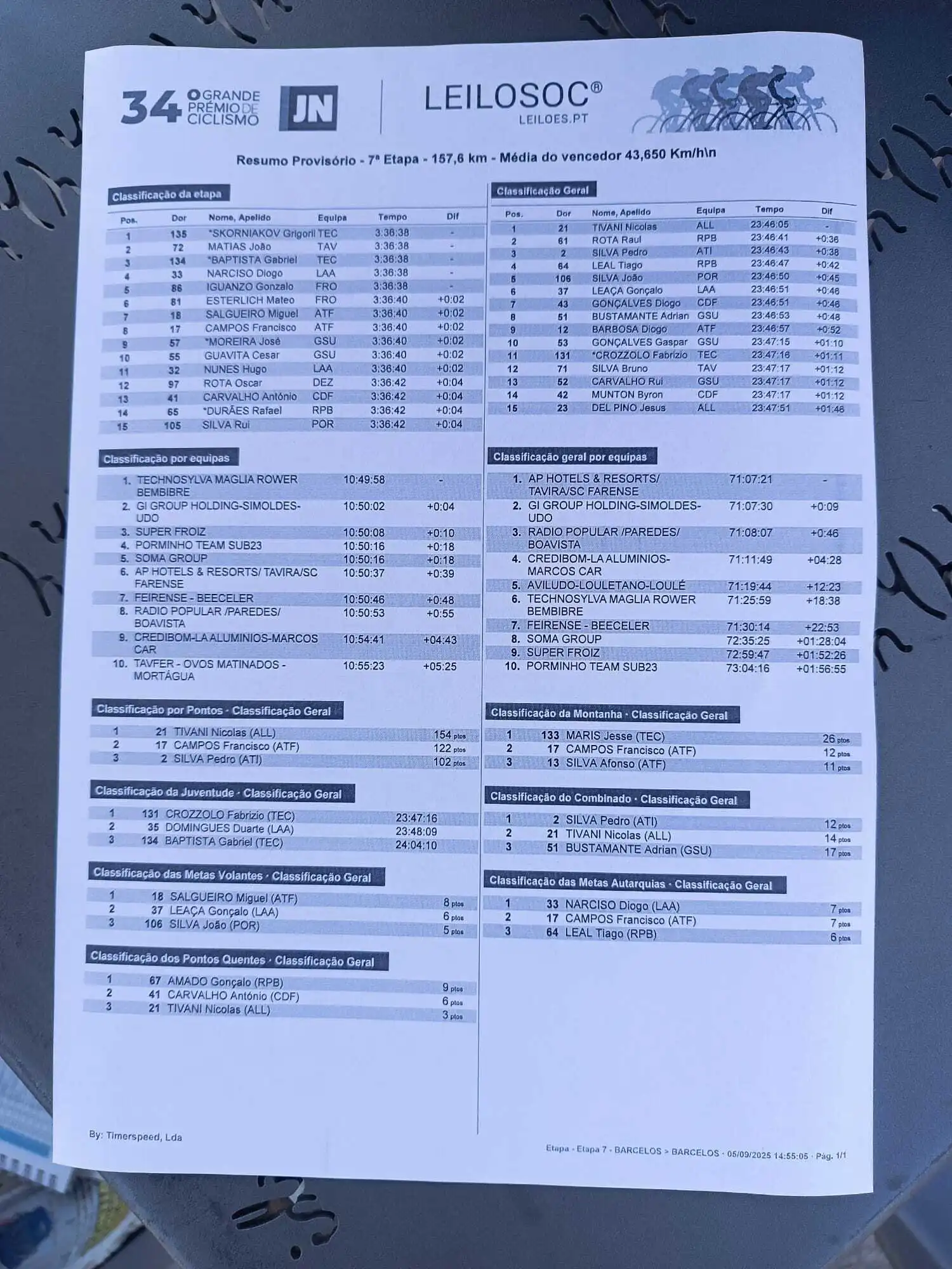 Na passagem pela Meta Volante de Barroselas, cruzaram pela seguinte ordem: 1.º Gonçalo Leaça (Credibom-LA Alumínios-Marcos Car), 2.º Miguel Salgueiro (AP Hotels-Tavira-Farense) e 3.º João Silva (Porminho). Miguel Salgueiro segue líder desta classificação.