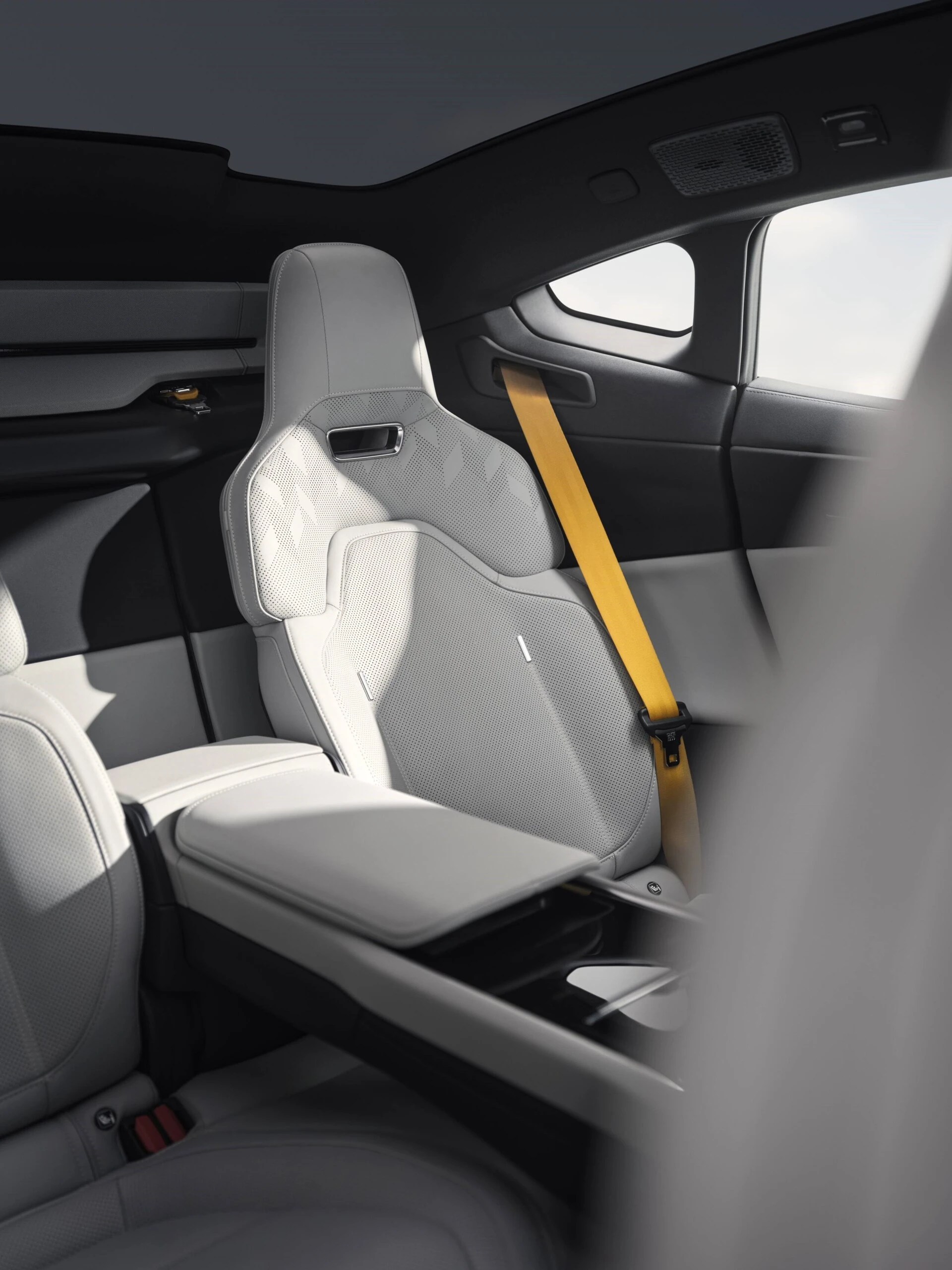O habitáculo traduz a filosofia sueca do luxo consciente, aliando tecnologia, ergonomia e materiais sustentáveis. Os bancos Recaro combinam uma posição de condução baixa e envolvente com um apoio lateral reforçado, transmitindo uma sensação de GT puro.