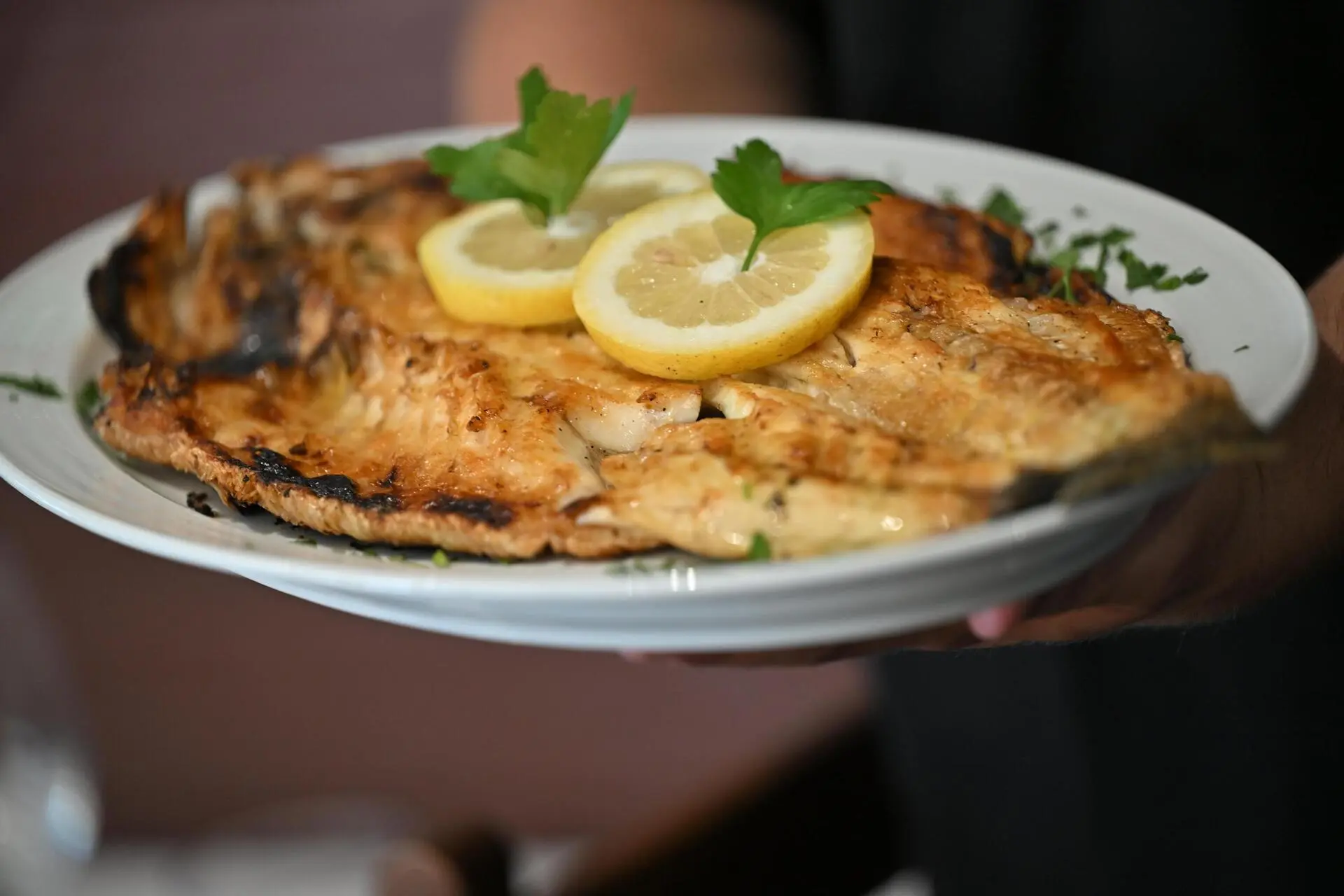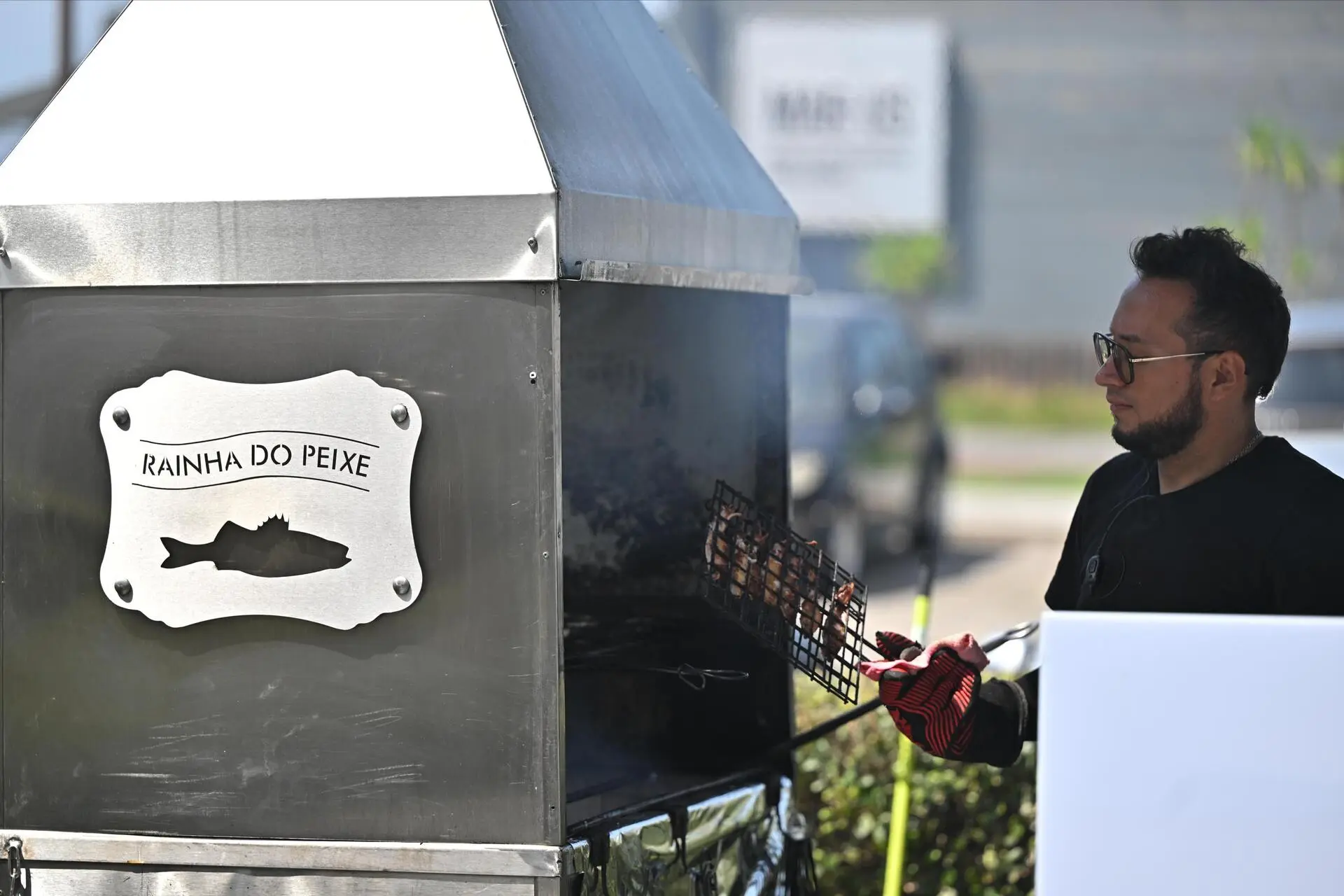 Na grelha está Luis Díaz, colombiano que trocou a profissão de assador de frango na sua terra para assador de peixe, ofício que aprendeu rápido. "Não tinha experiência, mas aprendeu e desempenha muito bem o seu trabalho", assegura João. "Está connosco desde o início." Das suas brasas saem os peixes frescos do dia, que mudam conforme o que está disponível. Por esta altura não faltam sardinhas, que este ano estão "com um sabor maravilhoso." Mas o ex-libris da casa é o robalo, que nunca falha, e que está igualmente disponível em arroz ou massada. "Temos também peixes grandes como o peixe-galo, garoupa ou cherne. Um dos acompanhamentos mais pedidos é a açorda de ovas."