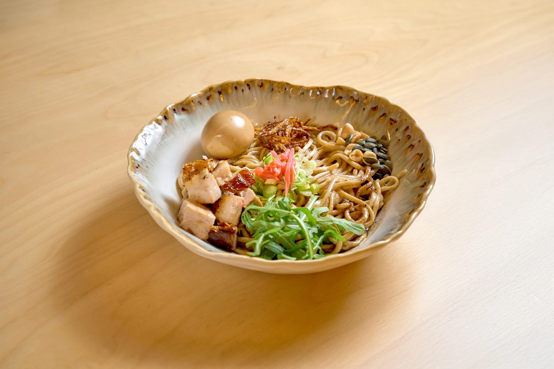 Há duas novas categorias de ramen, que reinterpretam a forma mais tradicional de o comer. Uma destas é o Mazemen, que substitui o caldo do típico ramen por um molho cremoso, de umami acentuado, e que pode ser provado de duas formas: com barriga de porco flamejado, cebola frita, negi fresco, rúcula, beni shiga, frutos secos e óleo aromatizado de alho; ou a versão vegana, que retira o porco e adiciona tempura de couve-flor e feijão-verde.