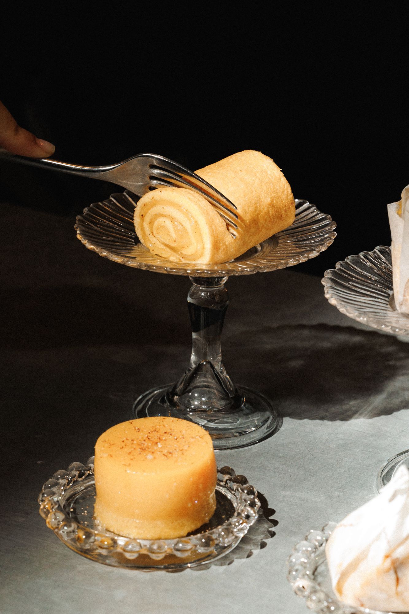 Os quatro doces representados, "todos clássicos da doçaria conventual", estão aproximados da sua respetiva versão tradicional, mas Maria Ramos deu-lhe aqui um cunho próprio. "Quisemos colocar o nosso ADN em cada um deles", conta a pasteleira de 33 anos, que já trabalhou com Nuno Mendes no BAHR, do Bairro Alto Hotel, e passou por casas como o Altis Belém, além das paragens profissionais no Algarve e em Óbidos.