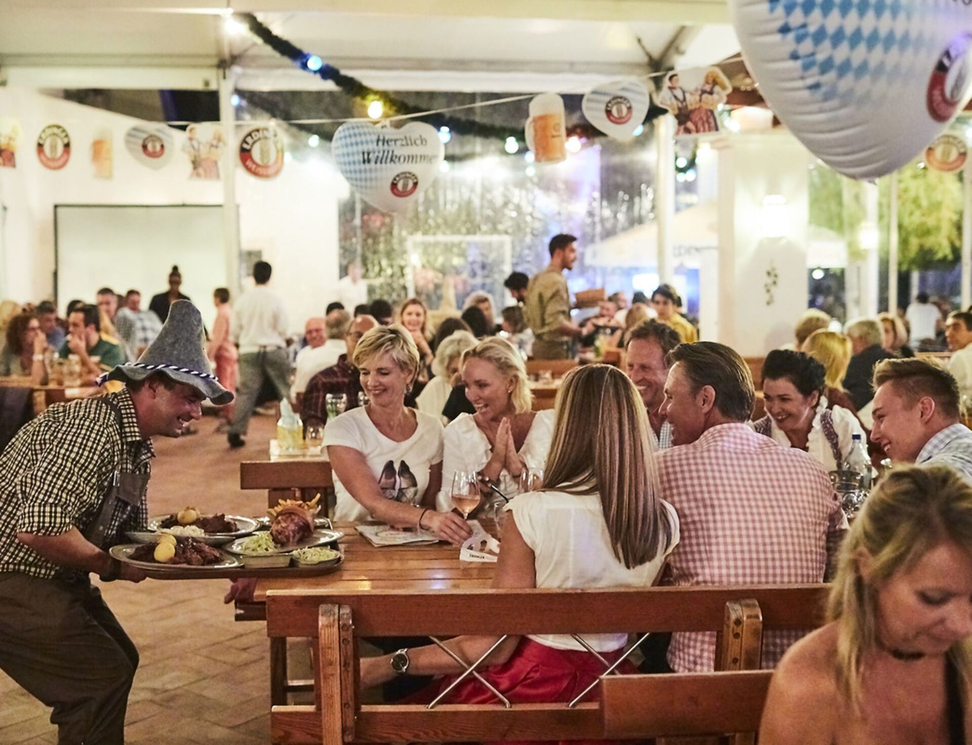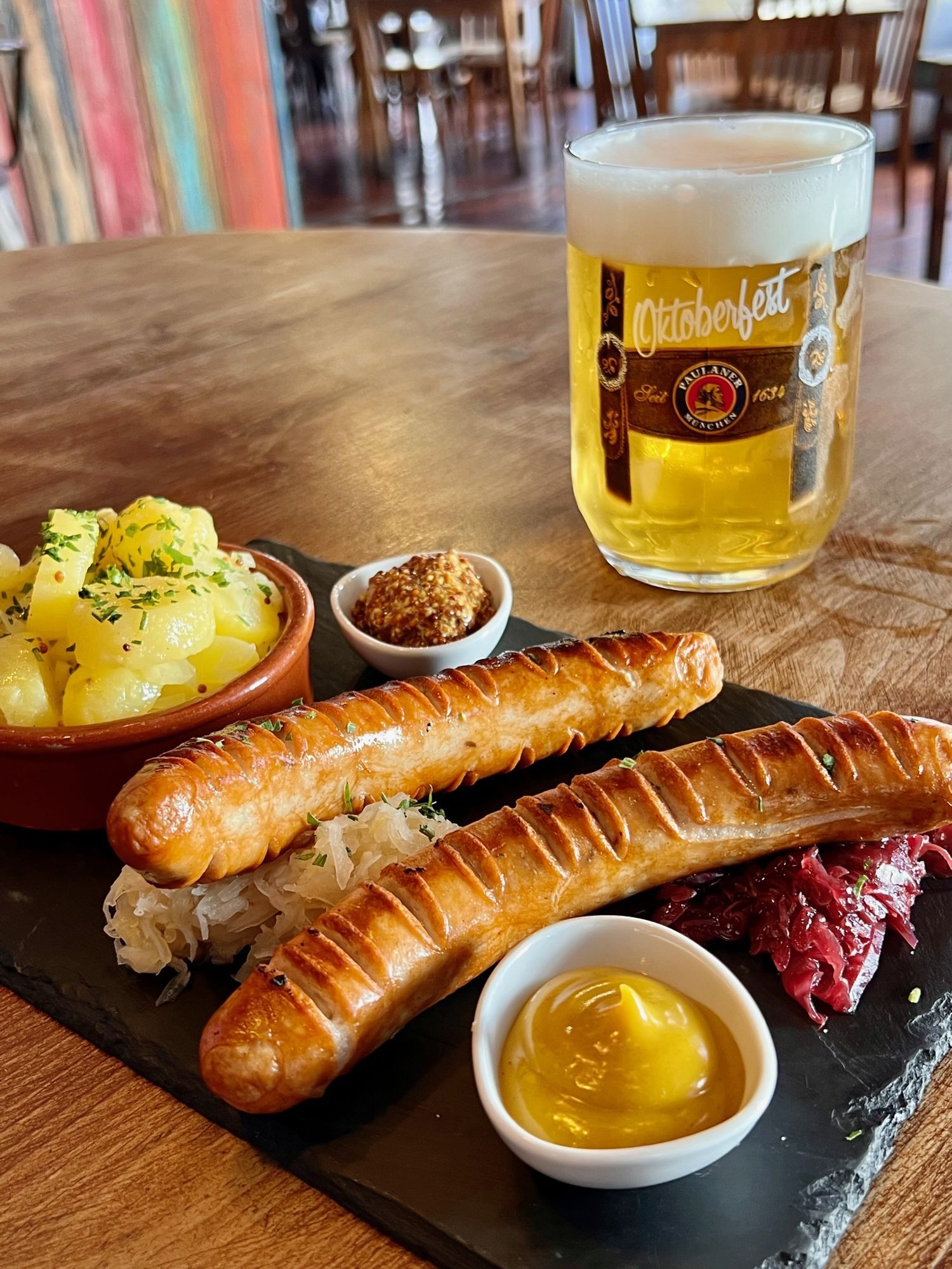 Para acompanhar as bebidas, os espaços têm um menu especial Oktoberfest, onde se inclui eisbein (joelho de porco), schnitzel de vitela, frango ou porco, duo de salsichas com molho curry e batatas wedges, spätzle com molho de queijo e cebola caramelizada, salsicha alemã com salada de batatas, mostardas, chucrute e cebola caramelizada.