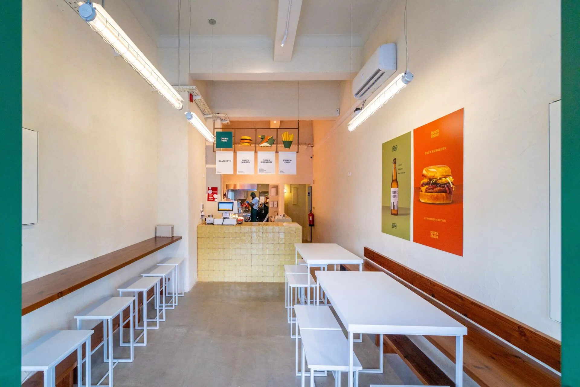 Para beber, o Quack Chack tem água, café, refrigerantes, kombucha (que é possível adicionar aos combinados), cerveja corrente e uma cerveja artesanal produzida pela Musa, com rótulo da marca. Na loja, com 12 lugares sentados no interior e oito numa pequena esplanada, a experiência foi desenhada para ser rápida e prática. Em paralelo, os hambúrgueres seguem de Alvalade para outras zonas de Lisboa através das plataformas de entrega de comida. Para já, os sócios estão "muito contentes com o feedback recebido", conta à Evasões Nuno Pimenta.