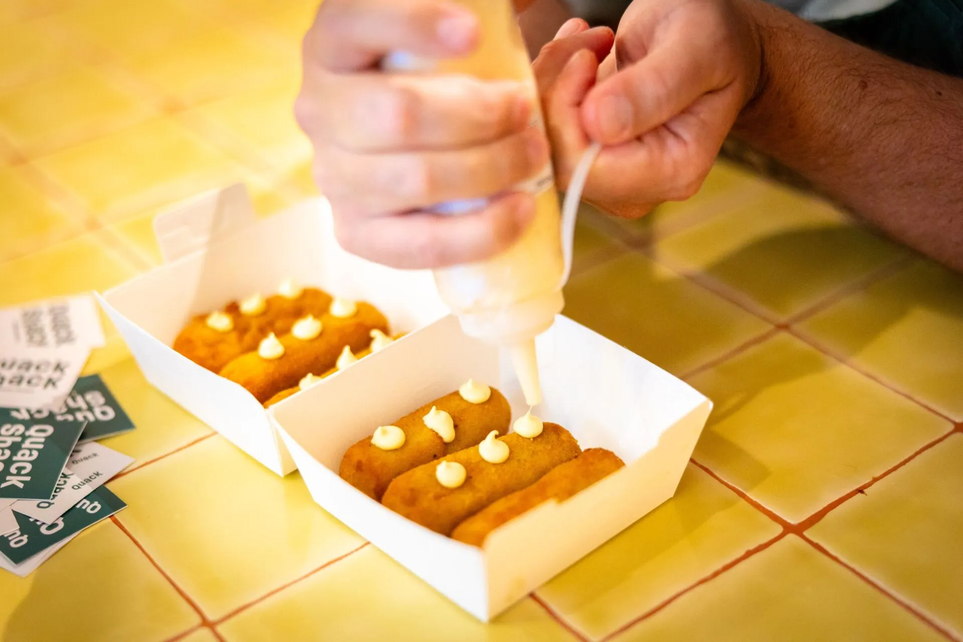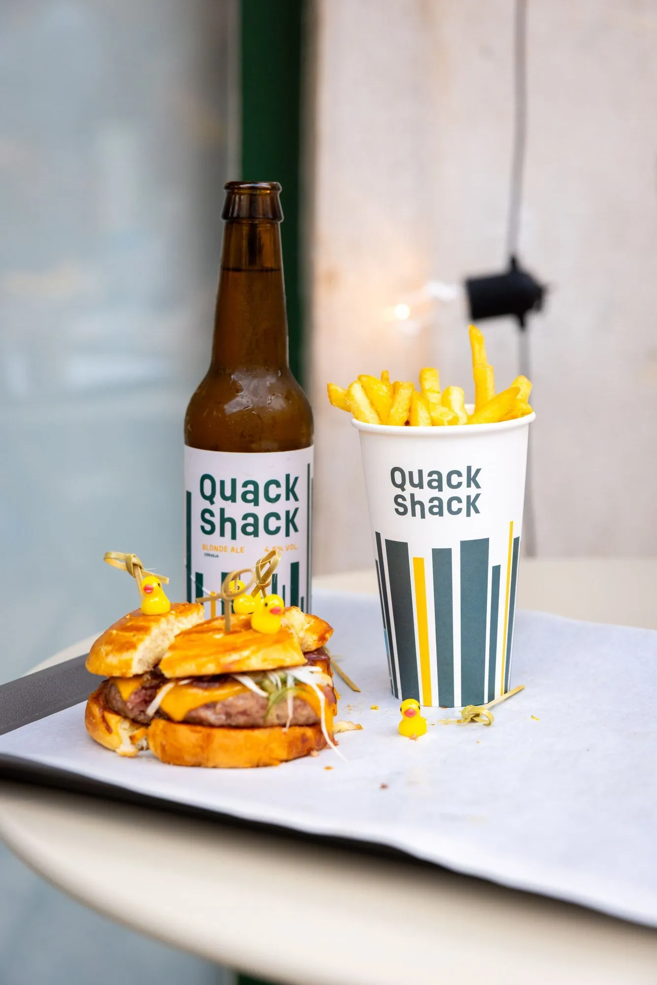 "É uma criação disruptiva que é, ao mesmo tempo, surpreendente e acessível. Queremos que cada hambúrguer conte uma história, desde os ingredientes até à apresentação", realça ainda o chef. "As pessoas sentem-se menos culpadas a comer este hambúrguer, por não ser de vaca, e além disso, o nosso pão brioche tostado diariamente na loja também tem sido muito elogiado", conta Nuno Pimenta, sócio do Quack Shack juntamente com João Seabra e Rodrigo Castelo. No menu, existem três opções de hambúrgueres de pato.