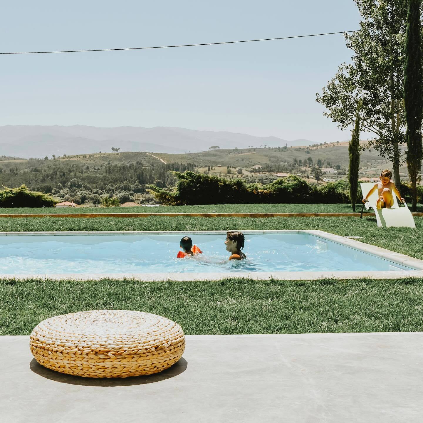 No terreno em redor - pouco mais de um hectare -, que estão a recuperar aos poucos, há um jardim com uma piscina de água salgada, e uma zona de churrasco à sombra de uma grande árvore. Pelos campos passeiam-se duas hóspedes permanentes, as ovelhas de estimação Maria e Susana, amigáveis com os visitantes de todas as espécies. Para quem leva os seus patudos, há apenas algumas regras, para garantir o bem-estar dos restantes hóspedes: nas áreas comuns, os animais têm de estar de trela, e embora não possam ir a banhos na piscina, podem refrescar-se no chuveiro exterior.