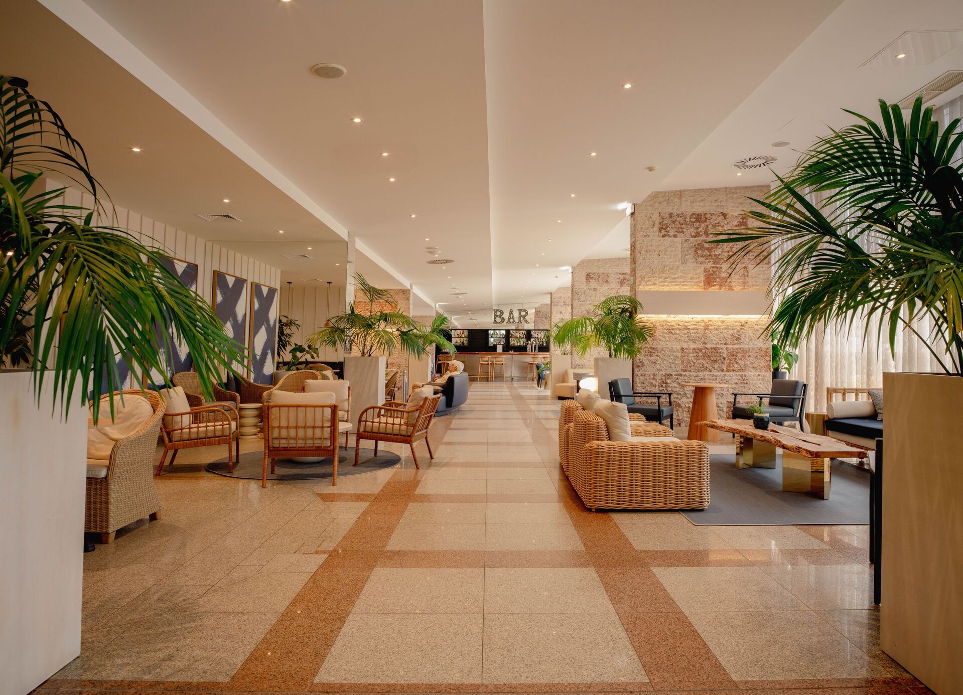 "A mudança de aspeto foi radical", comenta Nuno Pinheiro, aludindo agora à decoração mais moderna e airosa que reveste o bar principal do hotel, no piso térreo. Ao fim de mais de um ano de intervenções, o Tryp Lisboa Caparica Mar - gerido pela Hoti Hotéis há nove anos num edifício com três décadas - surge agora de cara lavada e apostado "em proporcionar uma experiência de lifestyle para todo o ano". No verão são sobretudo os casais e famílias que o procuram, enquanto nos meses de inverno acolhe grupos e equipas desportivas estrangeiras.