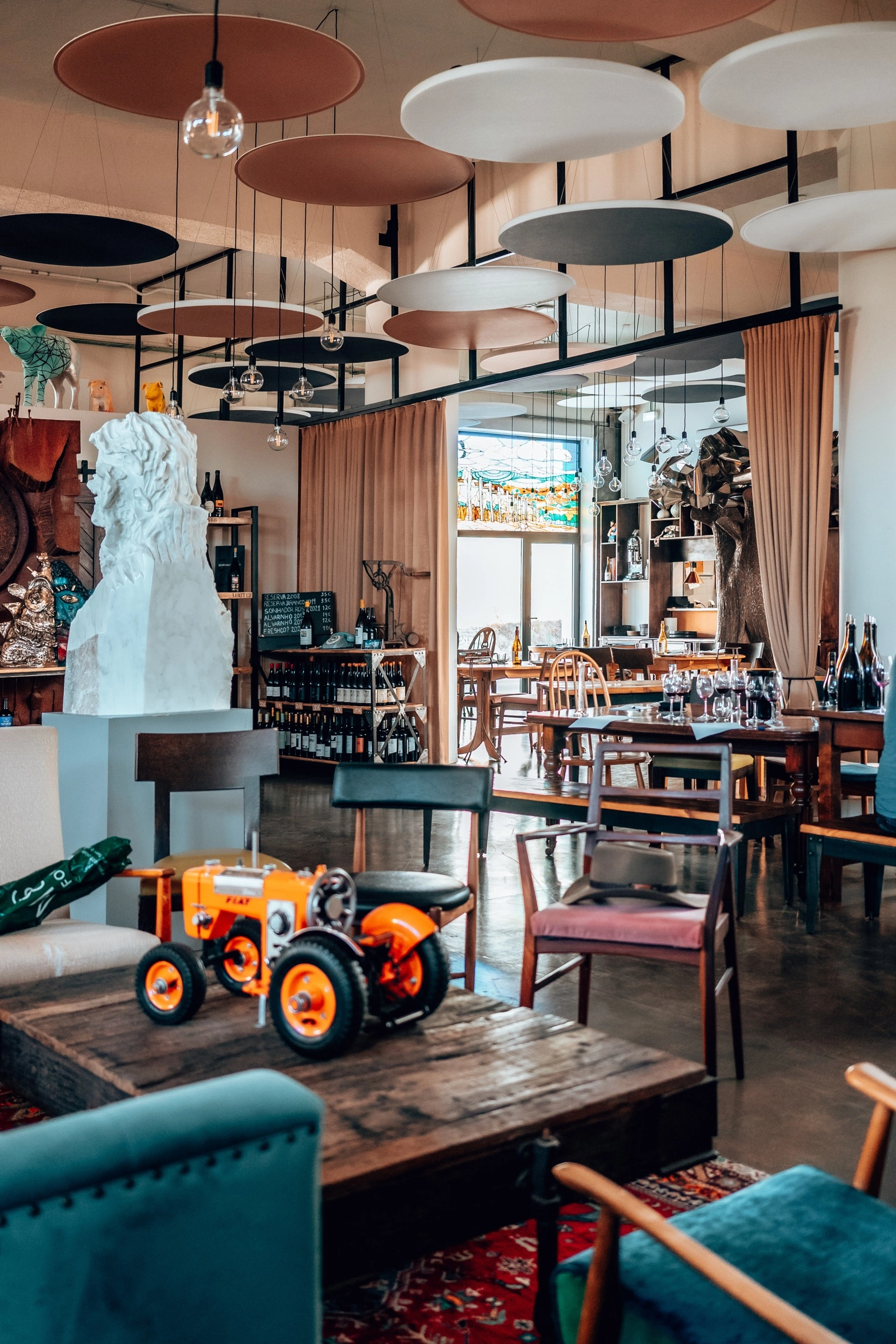 E por falar em gastronomia. Envolto em centenas de peças de arte, que o proprietário foi colecionado ao longo das décadas - pinturas, esculturas, instalações artísticas de artistas nacionais e internacionais -, o restaurante homónimo junta à mesa produto alentejano, na sua maioria, e influências de várias cozinhas do mundo. O pastel de massa tenra com recheio de camarão, leite de coco, mandioca e óleo de palma; os croquetes de alheira de porco preto alentejano; as puntillitas com aioli nero; a pasta de beringela com romã, poejo e focaccia; a morcela com foie gras, chutney de maçã e baunilha; e o tártaro de novilho de carne alentejana DOP são algumas das entradas da casa.