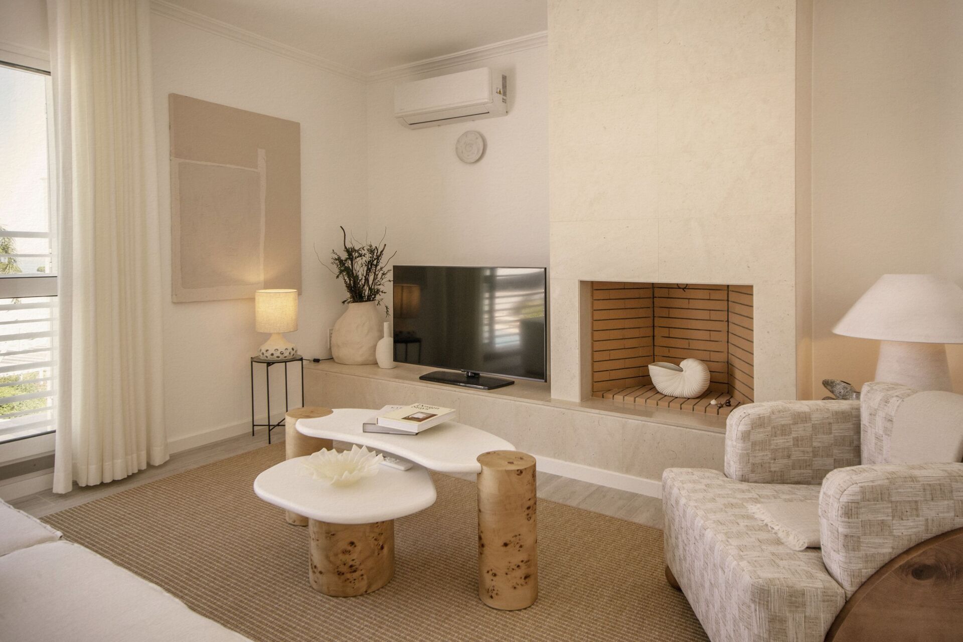 O projeto de interiores foi desenvolvido pela designer Ingrid Aparício by Studio Bacana e apostou em ambientes "onde o design orgânico se funde com texturas naturais, tons terra e elementos sensoriais, evocando o ritmo lento do sul". Todas as divisões parecem gozar de bastante luz natural, e na globalidade, os apartamentos têm ainda um terraço privado mobilado com sofás e mesas. Nas salas, podem dormir ainda mais dois adultos, já que todos os sofás-cama são king size. Nos T2 existem duas casas de banho com banheira ou duche.