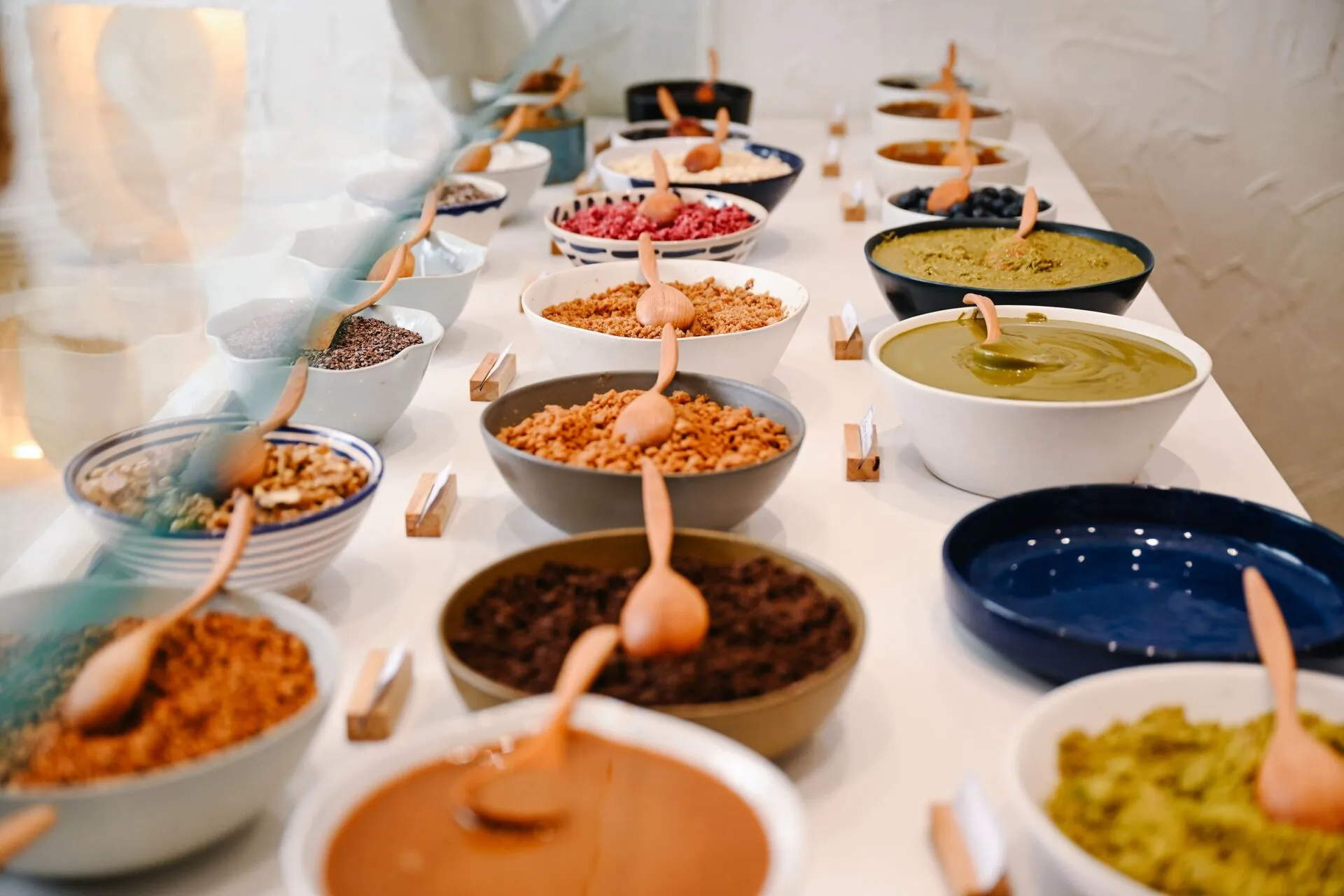 "O iogurte é preparado diariamente na loja, com leite de cabra natural pasteurizado e kefir de cabra, o que o torna autêntico, mais cremoso e rico em probióticos" amigos da digestão, explica Beatriz à Evasões. Na boca, destaca-se pela cremosidade e pelo sabor equilibrado, em virtude da adição de pouco açúcar. "A vantagem é cada um poder colocar mais ou menos toppings consoante o gosto ou a altura do dia", continua a jovem. "De manhã há quem ponha fruta e granola, e antes do jantar, azeite e flor de sal." As coberturas surgem no balcão à entrada.