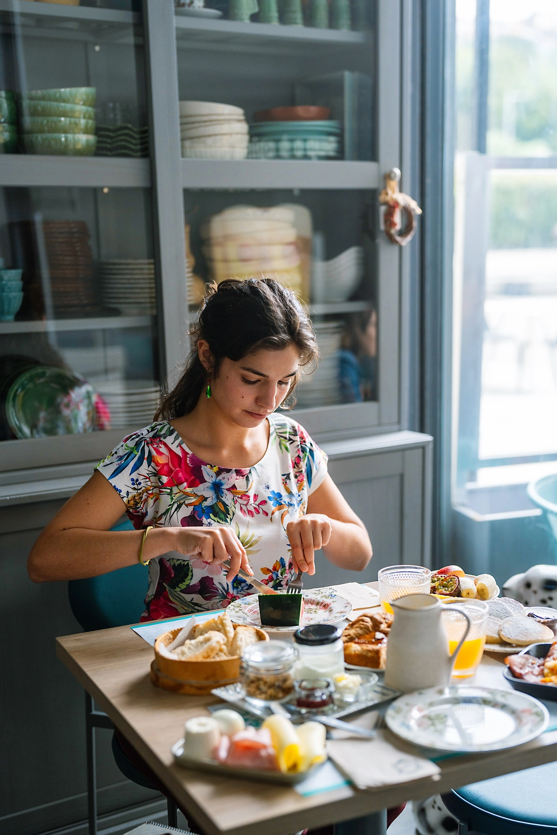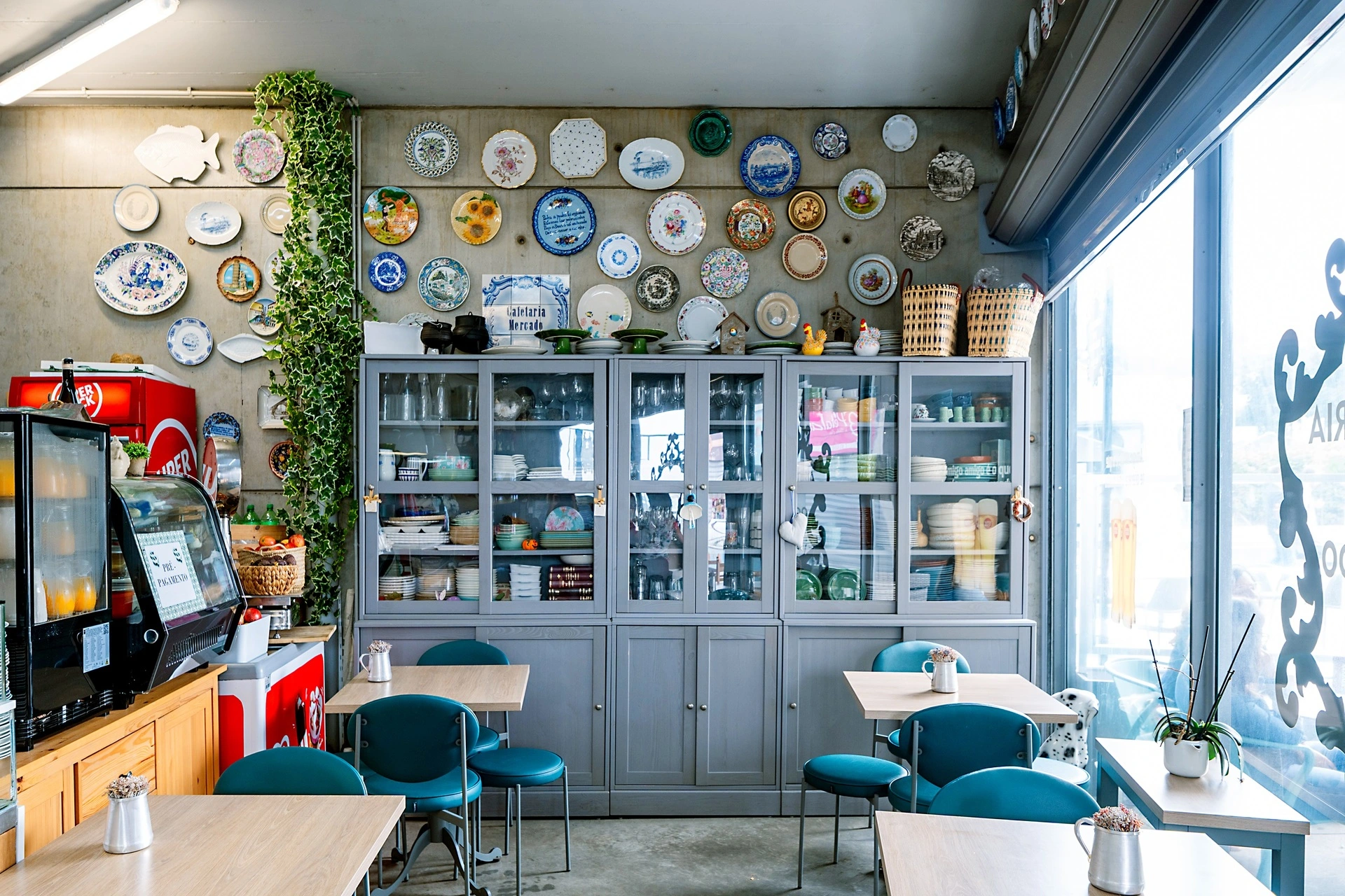 A Cafetaria do Mercado é um refúgio onde tradição e simplicidade se entrelaçam num ambiente acolhedor e carregado de memórias. Objetos que evocam as raízes portuguesas convivem com um móvel cujas louças aguardam para ser usadas para servir brunches, almoços tradicionais e lanches. Neste espaço, clientes e família tornam-se um só.