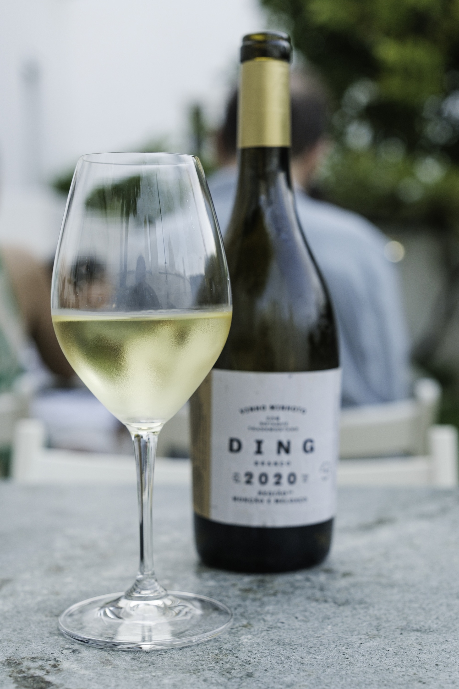 O remate final faz-se de morangos frescos, iogurte grego, granizado de frutos vermelhos e pó de framboesa, acompanhado no brinde com um fresco Ding Rosé 2020, blend de Alvarinho, Tinta Roriz e Touriga Nacional.